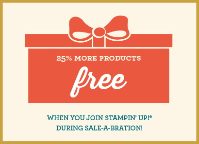 Check out the super value packed, totally customizable Starter Kit! Pay only $125 (no shipping!) and get up to $155 in product! When you join the Stampin’ Up! family during Sale-a-bration you will receive 25% more value in your starter kit! That’s $194 of the products of your choice for only $125! Click HERE to join!