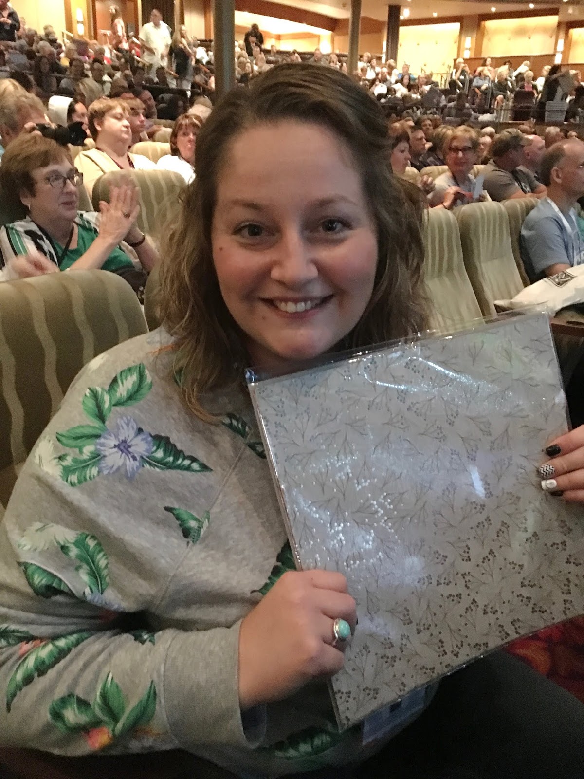 Then I spent the afternoon visiting with friends and stopped by the Stampin’ Up! hospitality room for – yup, more gifts! We got to spin a wheel to earn a prize. I got a super adorbs punch that’s coming out in the new Holiday Catalogue.