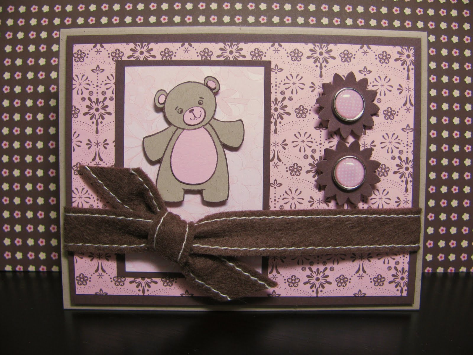 I went in to work this morning to find out that one of the girls I work with has just had a baby girl! I have worked with Jessica for 5 years, so I wanted to make a card for her that was really ‘her’. She’s a girly girl with a classic ‘pretty’ style, so I hope my card delivered. I have used some retired papers and embellishments here, so don’t go gaga for them. BUT the Cute and Cuddly stamp set is still available until the end of June, so get your order in quickly if this is on your wish list! I think I’m on a paper piecing kick, because I did it again on the bear!