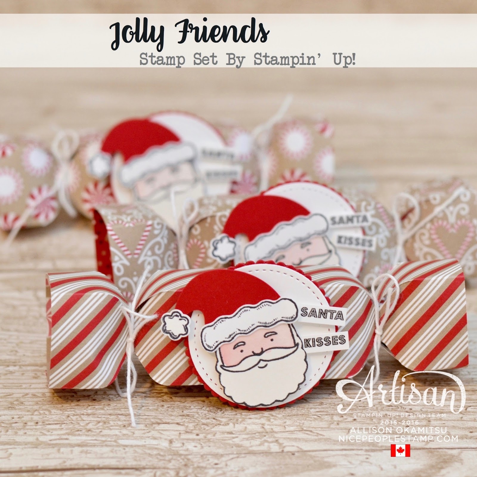 Hello my friends and welcome to the official Stampin’ Up! Artisan Design Team blog hop. This is our week to do an ‘open project’ and I’m sharing Christmas crackers I’ve embellished with the Jolly Friends stamp set and punch bundle.