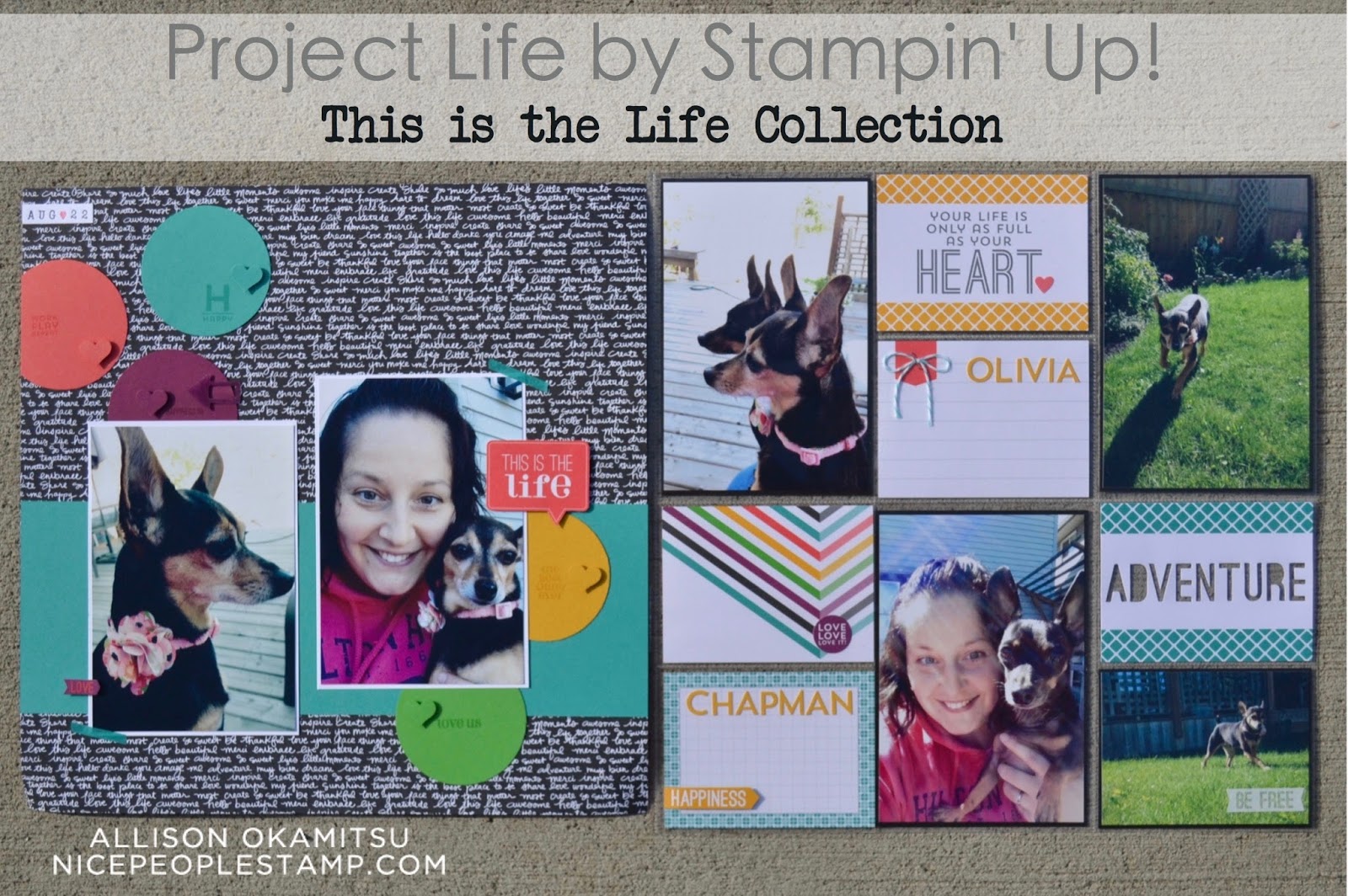I’ve used the This is the Life Project Life by Stampin’ Up! Collection to document the day we brought our little girl Olivia home. I often use my Project Life supplies to create a 12×12 traditional layout to compliment my pocket style layouts.