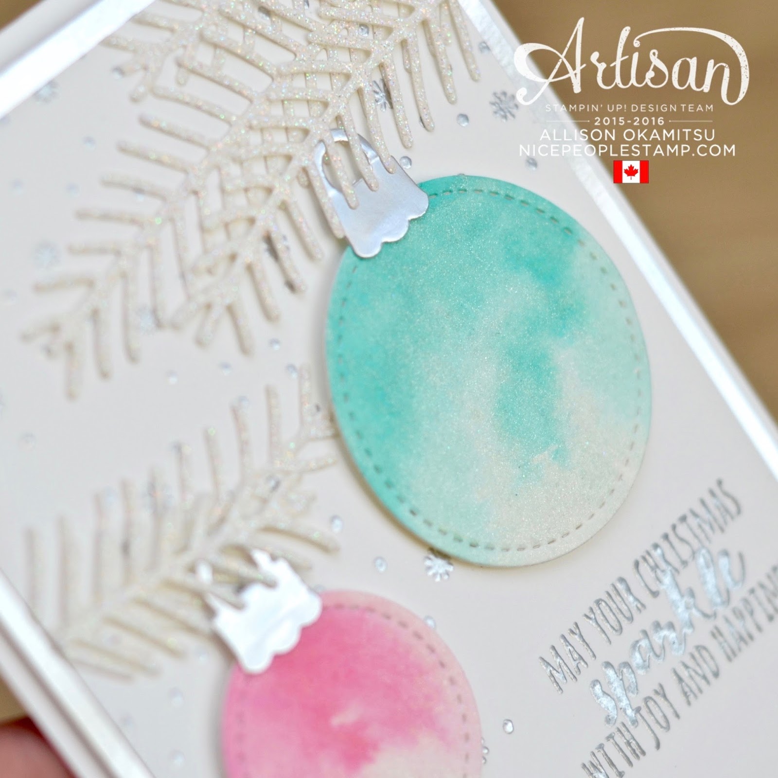 - Don’t skip the watercolouring! Remember mercury glass? It came in all kinds of colours, and you guessed it – it’s coming back too! By watercolouring the ornaments and then adding a wash of Wink of Stella on top you’ll get a lovely mercury glass look.