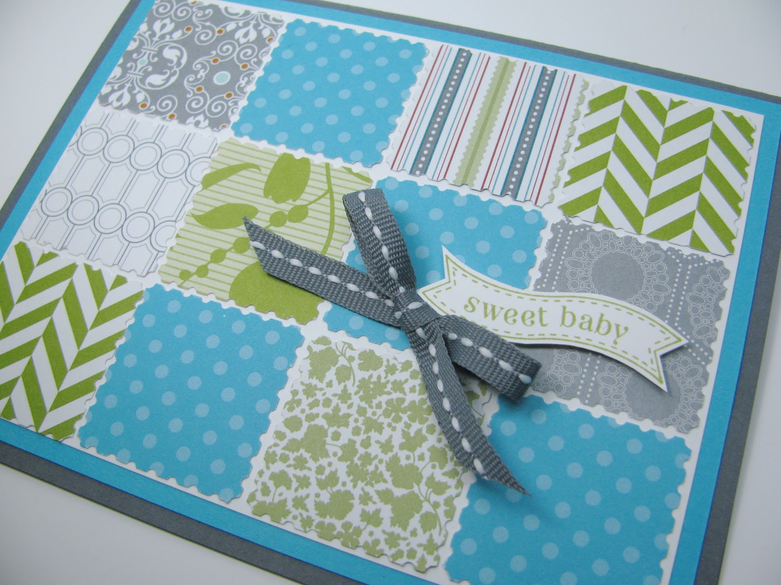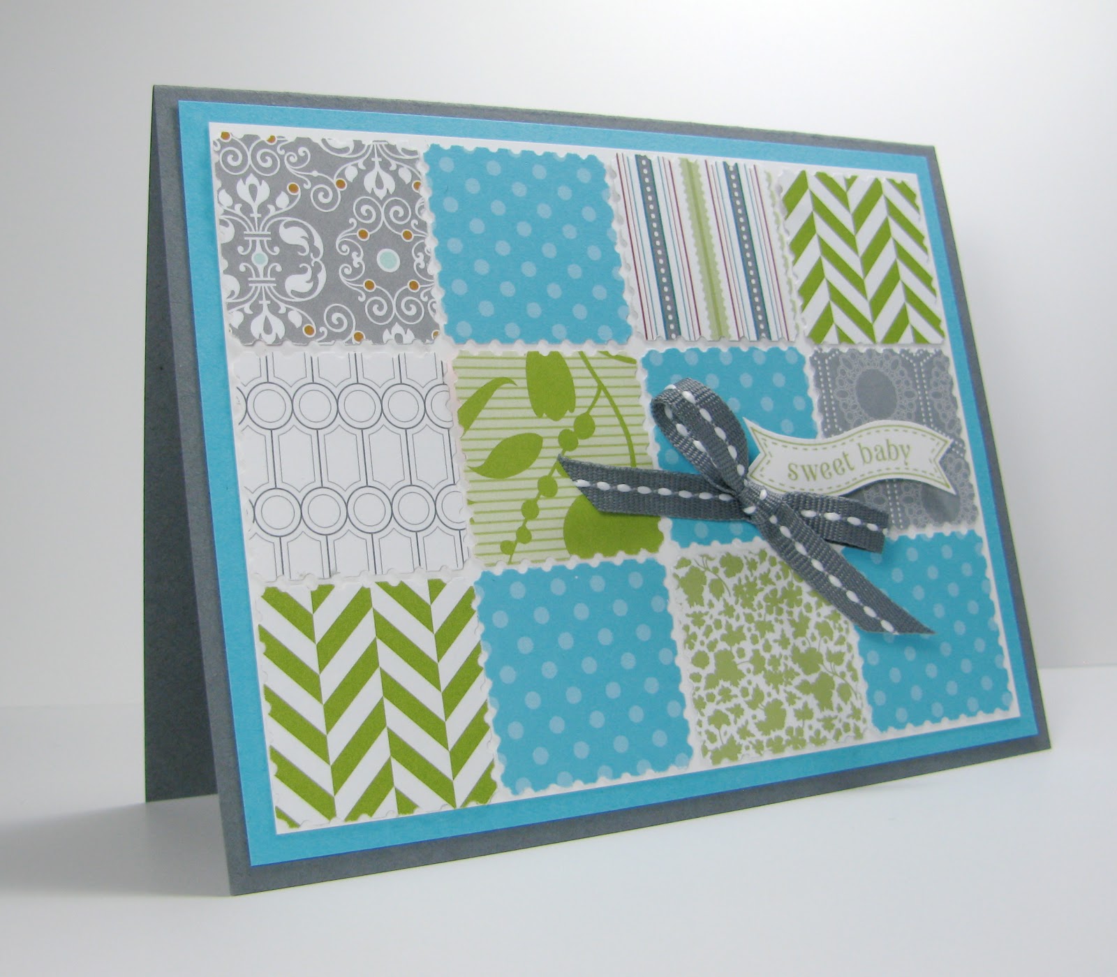I got a request earlier this week for a card to co-ordinate with a baby quilt. It’s really easy to make a matching card when you have a bunch of designer papers at your fingertips. 🙂