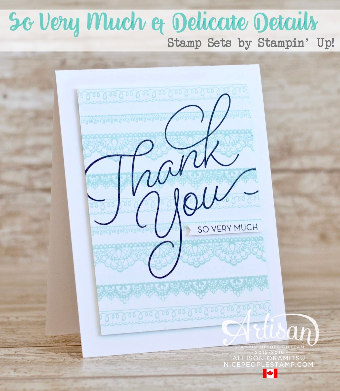 What a great use of that lace stamp. It looks beautiful behind the thank you. I have not even inked that set yet. Sigh… XOXO