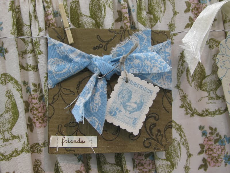 I love all the embellishments on this little 3 x 3 card! And that fabric!!!