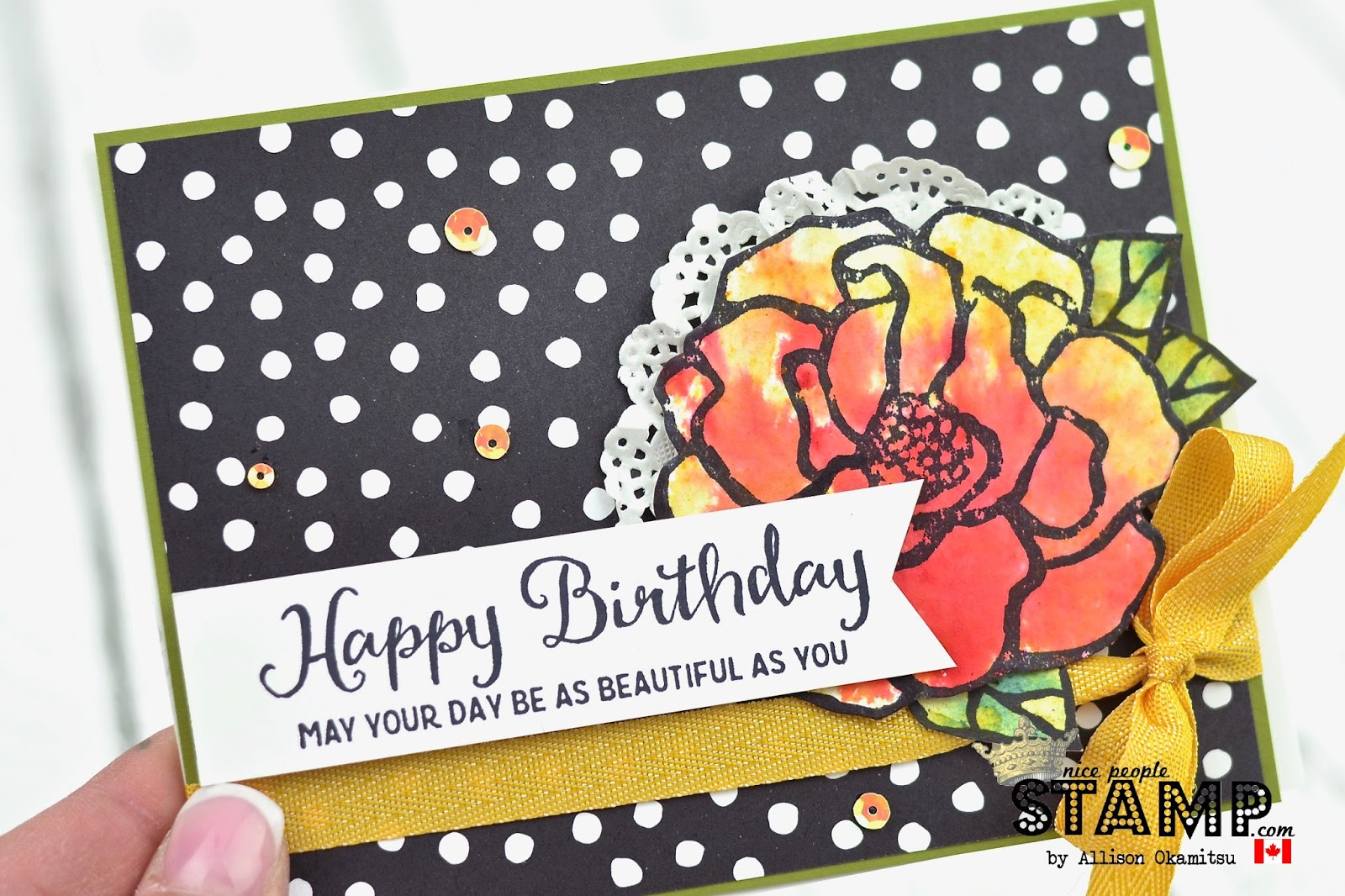 Beautiful card Allison! I love how you coloured the flowers and leaves with brusho, the texture it adds is fantastic! Happy Stampaversary!