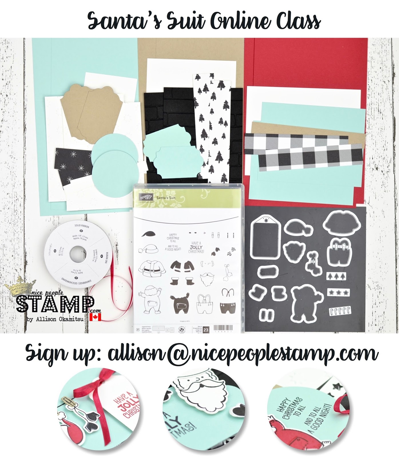 I’ve been playing with the Santa’s Suit Bundle recently and my gosh it is CUTE! I’ve had a blast playing with the images and matching framelits. So much so that I designed my next online class using this bundle!