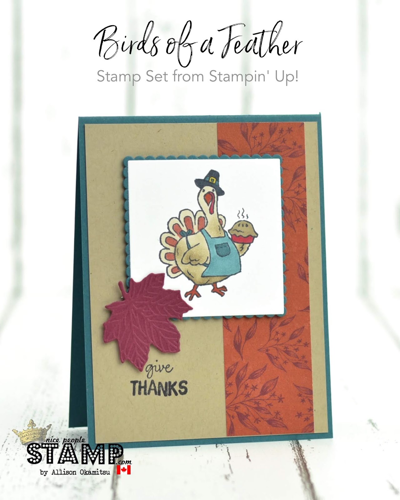Hi friends and welcome. I’ve got a cute Thanksgiving card to share with you today, featuring the Birds of a Feather Stamp Set. This is one of those sets that every person who likes colouring truly needs. Not only are the images super fun, but you can get through 4 holidays with just this one set!