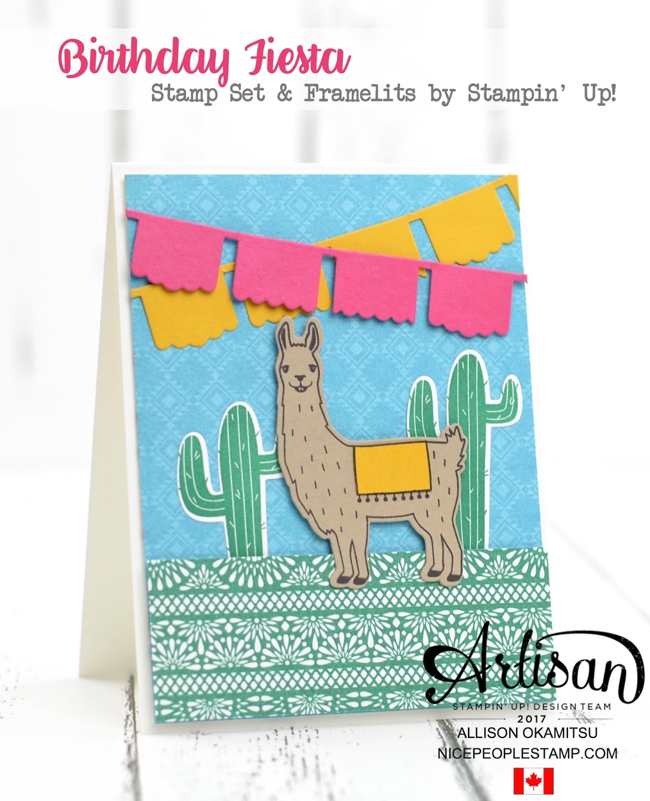 My projects today use the Birthday Fiesta Stamp Set and coordinating Fiesta Time Framelits. Not only are they bundled together for 10% off, they’re also retiring – which means that once those framelits are sold out, the bundle is GONE FOREVER.