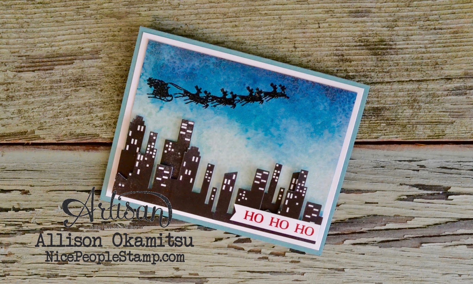 And what’s a night sky Christmas card without Santa and his sleigh soaring by? This stamp is from the Cozy Christmas stamp set.