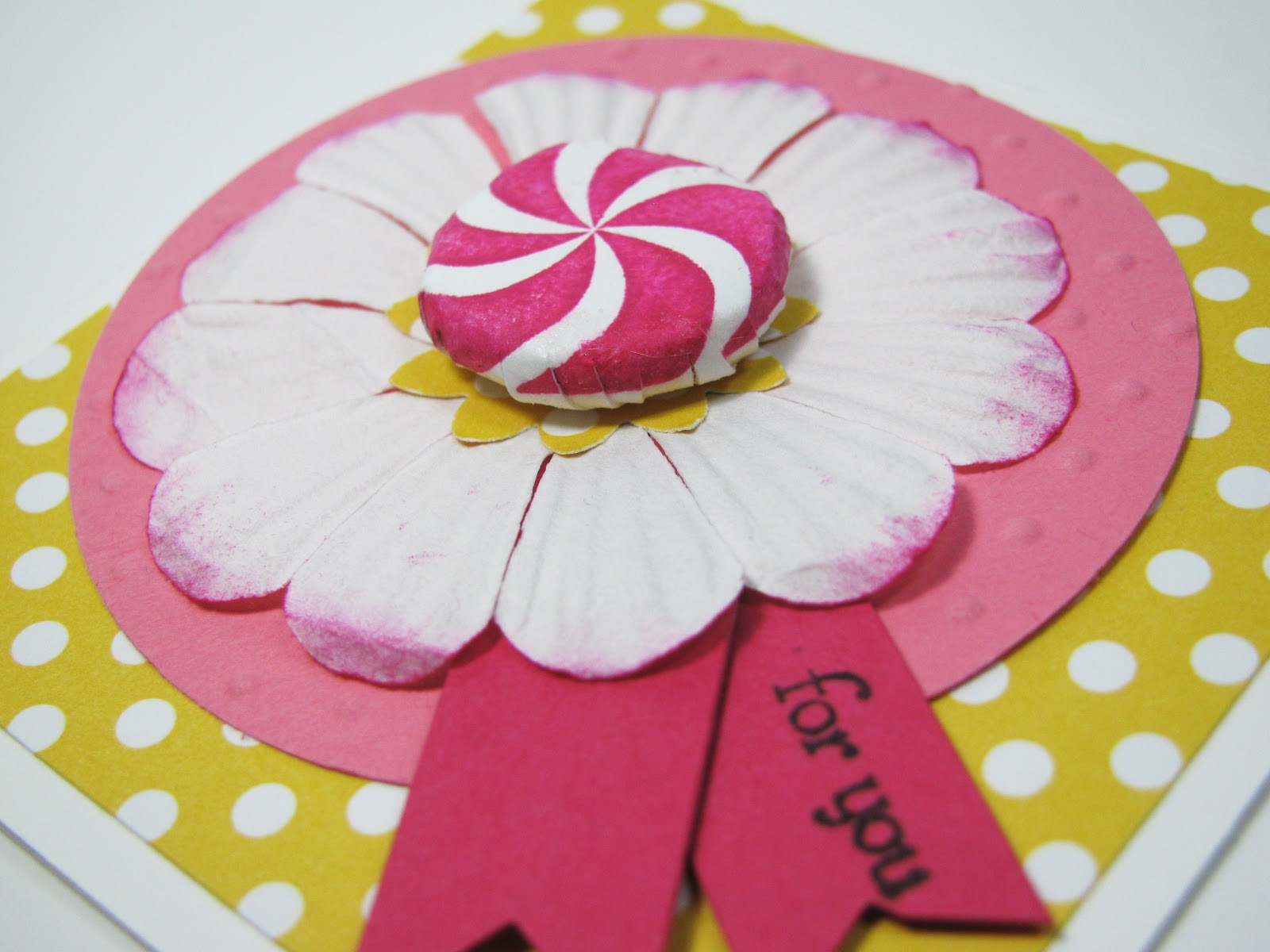 Have you checked out page 49 of your Stampin’ Up! Annual Catalogue? Isn’t that little candy embellishment ADORABLE!? It was one of the first little tidbits that caught my eye, so I was thrilled when I received this swap from Cheryl Braney at Convention showing of this fun embellishment.