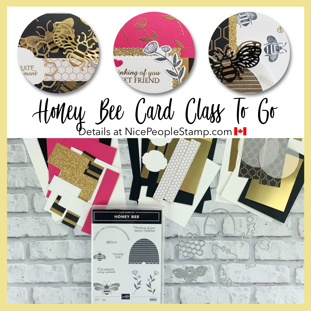 Packed with lots of gold accents and the cutest bee stamps and dies, you’re going to love the Honey Bee Card Class To Go!