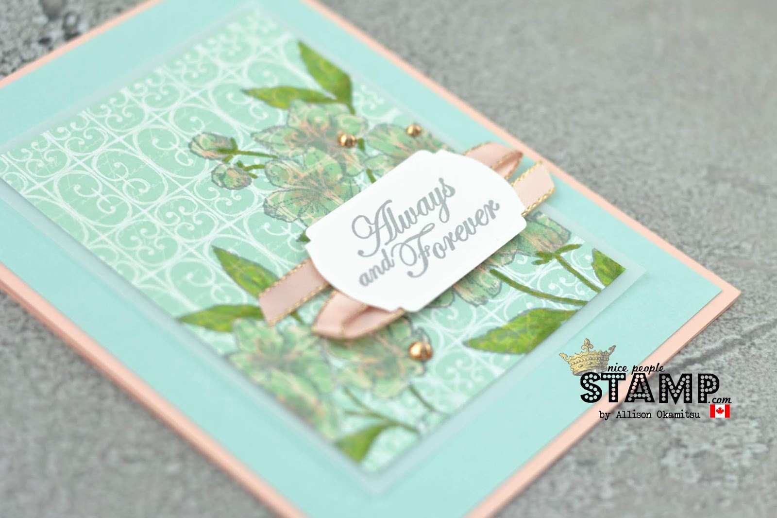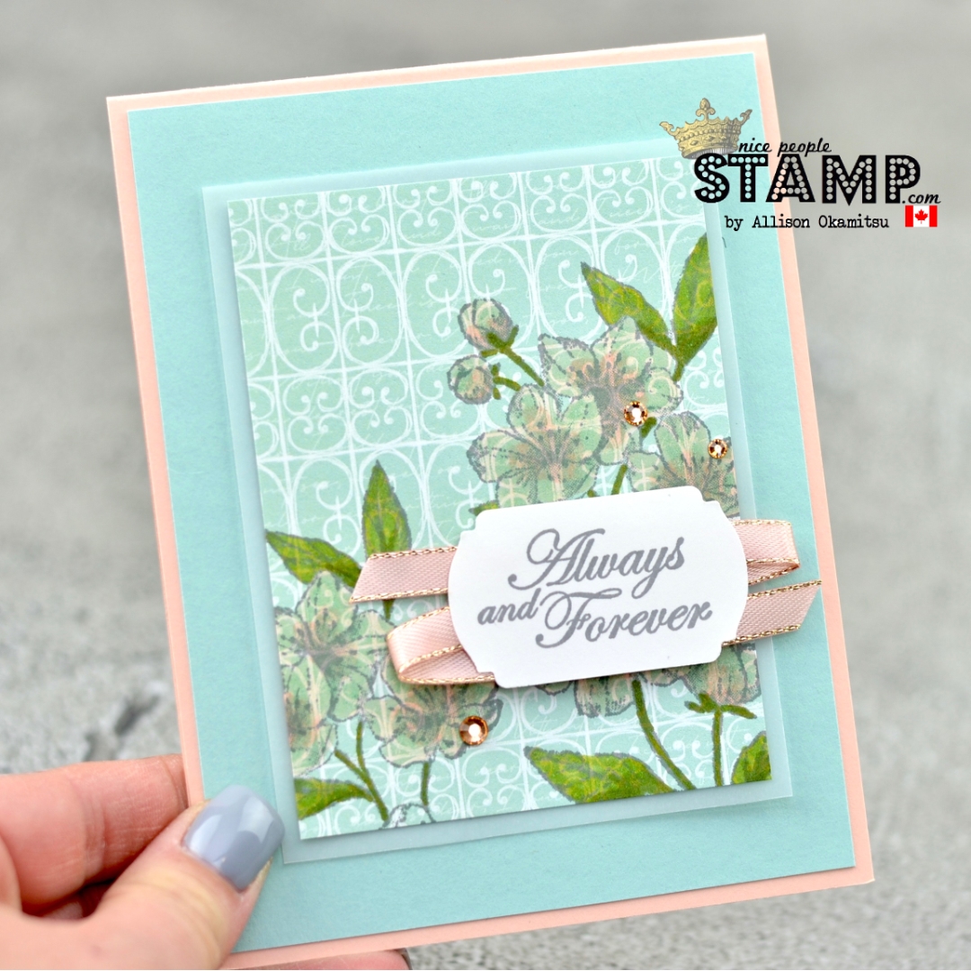 - Try stamping on designer series paper! The florals on this card were stamped with Smoky Slate Ink onto the Parisian Blossoms Designer Series Paper.