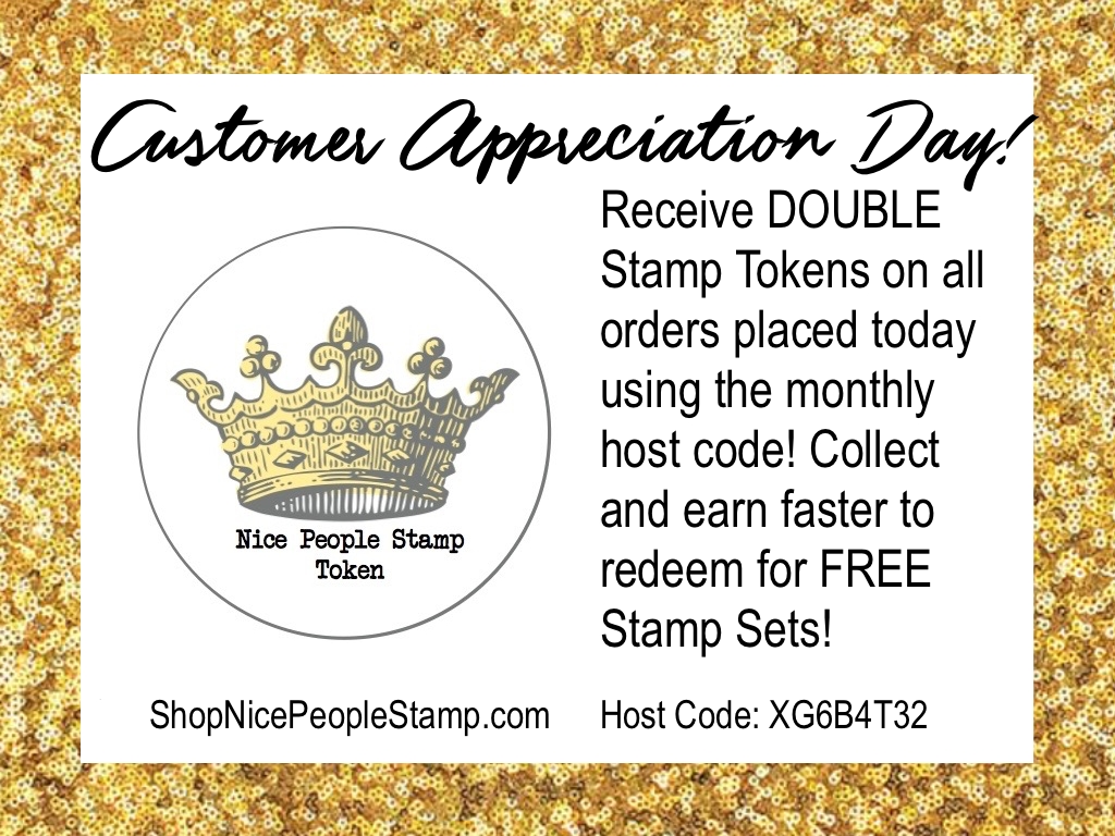 Today is also Customer Appreciation Day! I am so incredibly thankful for my customers and their loyalty to me and my crafty journey, so I’m giving DOUBLE Stamp Tokens on all orders.