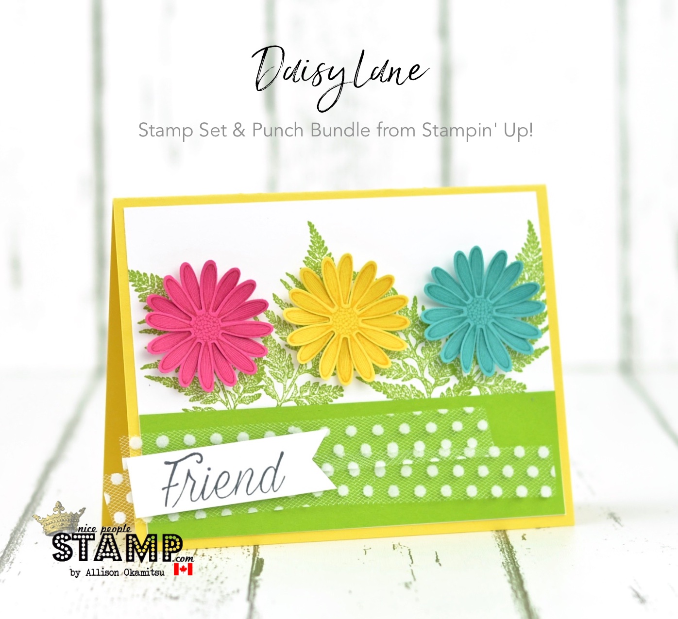 This card is definitely on the easy end of the scale, but it does require a die cutting and embossing machine if you’d like that basket weave look. I used the super popular Daisy Lane Bundle for all the cards in my video today.