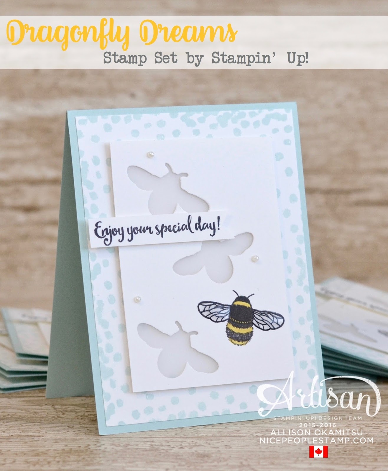 The Dragonfly Dreams Stamp Set is so stunning, and in addition to dragonflies, it also includes this adorable bee stamp. The Detailed Dragonfly Thinlits Dies also have a die to cut out those little bees. So perfect. You can purchase the stamp set and dies as part of a bundle for 10% off. Love those savings!
