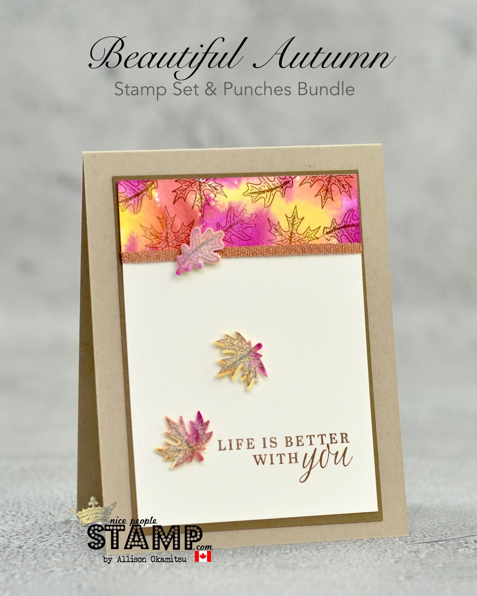 Today’s card has two watercolour techniques – and one is glittery! I’ve also used the stunning Beautiful Autumn Bundle of stamps and punches for a gorgeous autumn vibe. Shall we get into the video to see how the watercolour is done and the card comes together? Let’s do it…