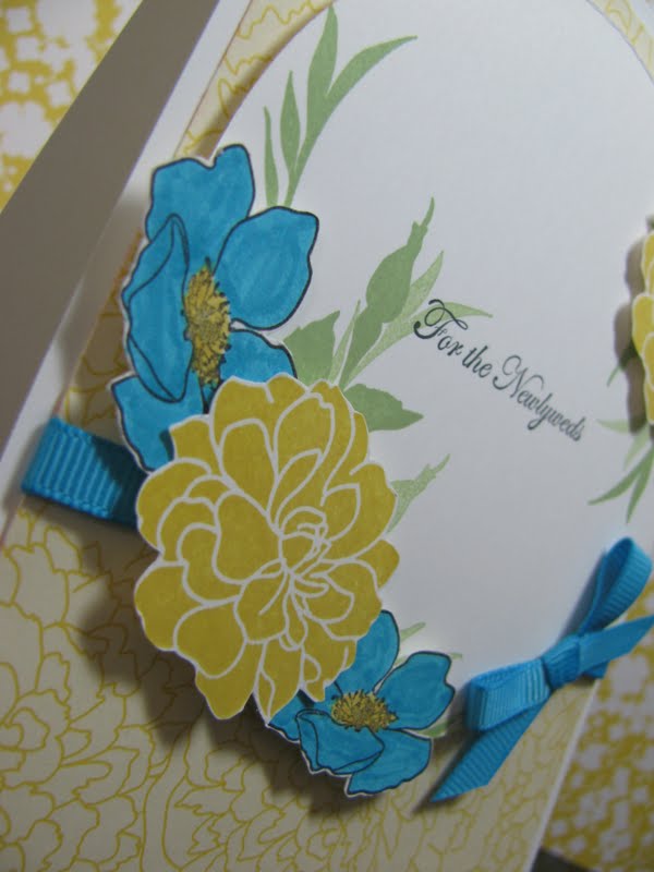 Today’s card was trapped on my camera’s memory card for a few days, but I finally convinced it to come out. It just wanted to be picky I guess. I think it’s because it’s been so rainy here in Calgary, but last night it was so beautiful and sunny! And sure enough it uploaded easily to my computer…weird. For this card I used the Fabulous Florets stamp set and Beyond the Garden designer paper from the Summer Mini Catalogue. I just love the bright and summery colours!