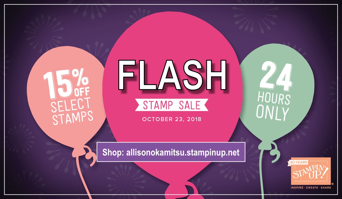 It’s FLASH SALE time stampers! Both Stampin’ Up! and I are celebrating our birthday this month, which means there’s not only a sale from Stampin’ Up!, but a bonus offer from me! Woo hoo! Bring on the double dipping!