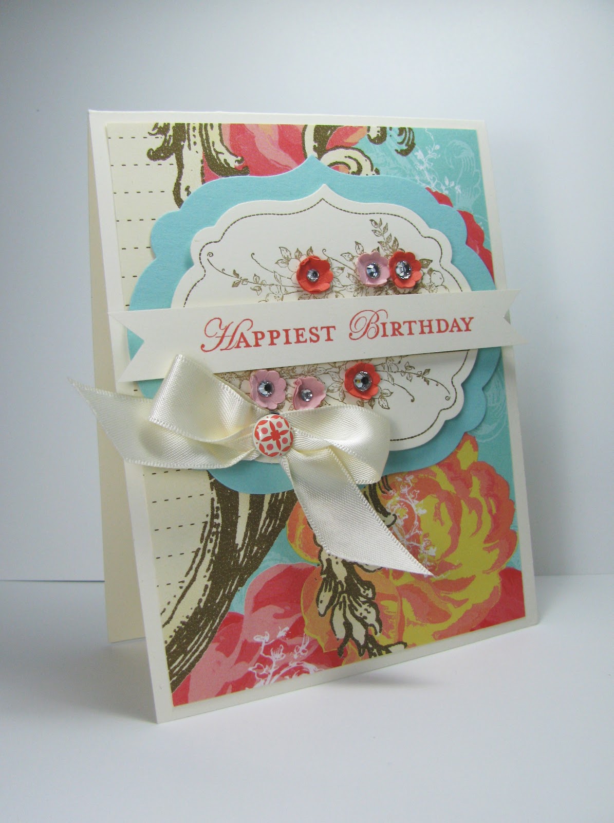 Today’s card is one that will appeal to you quick crafters out there! The Apothecary Art stamp set is AMAZING, but some people shy away from it because they think they have to colour in all those little flowers. Well, if you’re short on time, just do what I did! Punch out a few blossoms with your Itty Bitty Punch Pack flower punch, add some jewels, and voila! No colouring required!