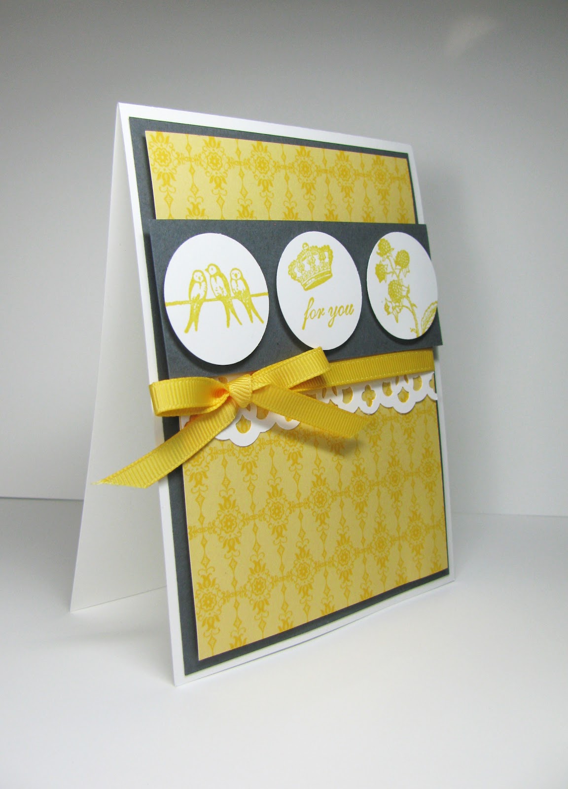 Today’s card uses ANOTHER favourite stamp set of mine. Yes, I do realize that I call them all my favourites! I buy the ones I love, and yes, I buy A LOT (please don’t let this be the day my husband actually reads my blog…). The Clearly for You stamp set will be going back into the Stampin’ Up! vault on May 31st, so if it’s a favourite of yours you’re going to want to order it before it’s too late!