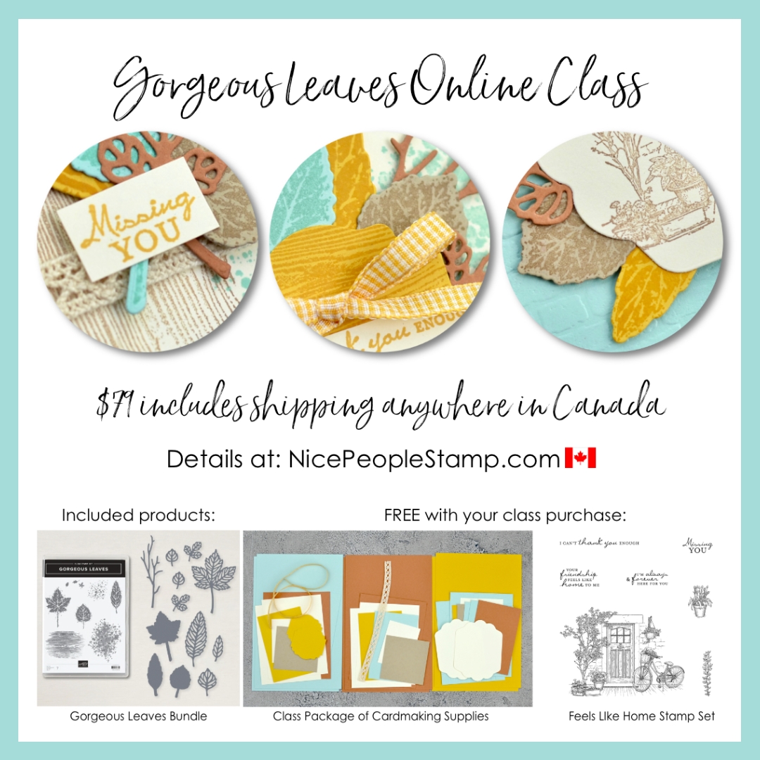 How to order: Email me at allison@nicepeoplestamp.com to let me know you’d like to order this class. You can pay via email $ transfer or PayPal. I will order the supplies from Stampin’ Up! and once the order arrives, prepare all the kits for mailing via Canada Post.