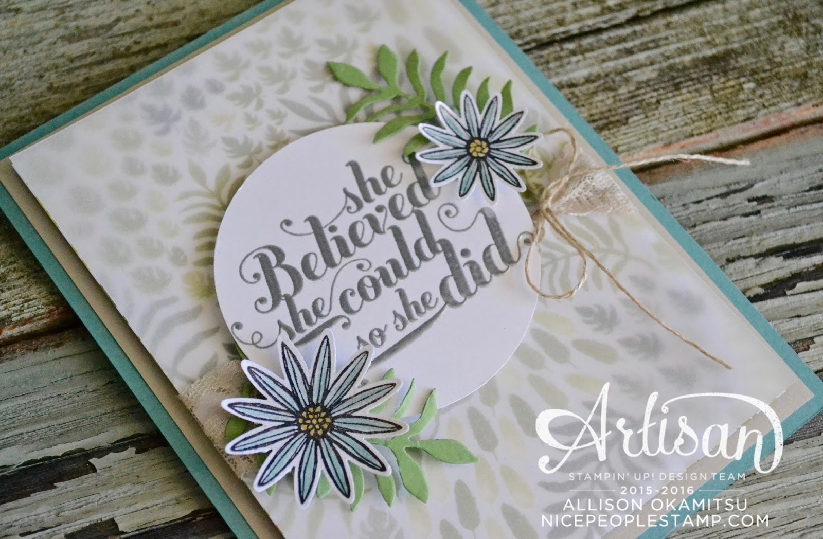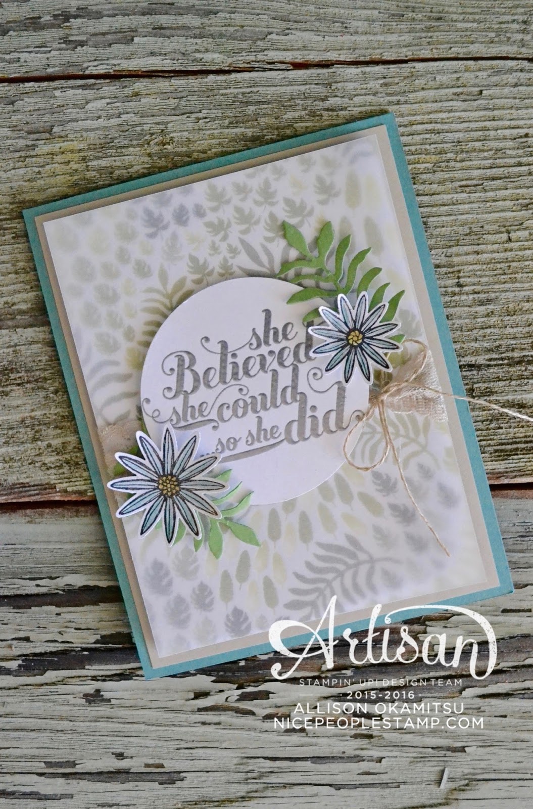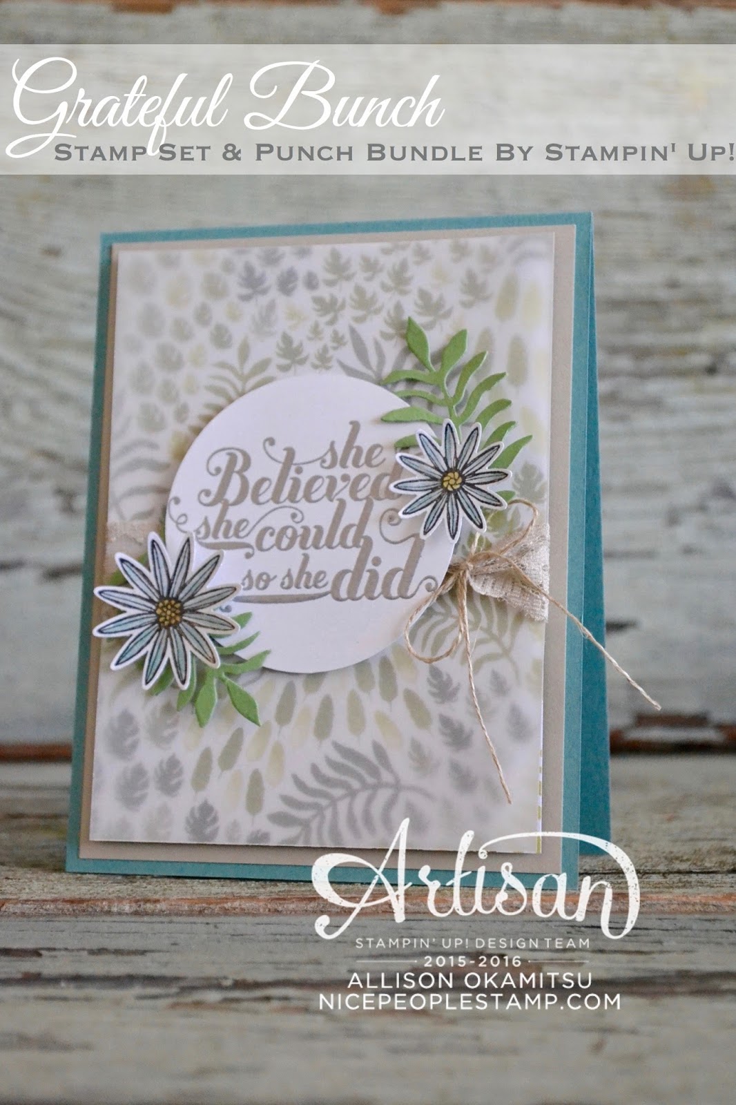 I had some cute flowers from the Grateful Bunch Bundle that I’d covered with Clear Wink of Stella for a glittery sheen that I knew would be the perfect accents around my embossed sentiment from the Feel Goods stamp set. A few more layers of paper mess cleared away, and I found the fern die cuts from the Botanical Builder Framelits too!