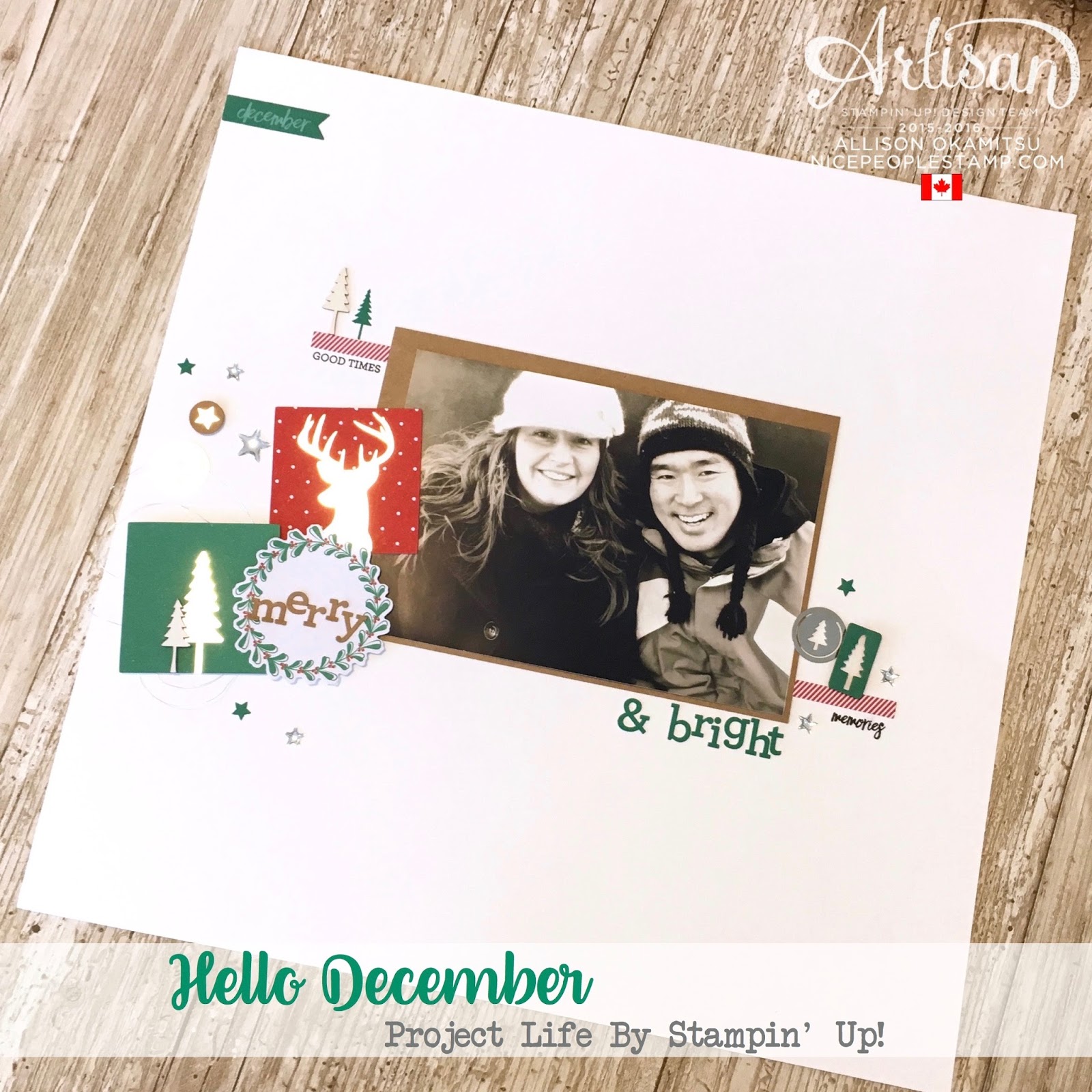 Today’s project is a 12×12 scrapbook layout that I’ve made with the Hello December Project Life by Stampin’ Up! Accessory Pack. I’ve said it before, and I’ll say it again, these accessory packs are Stampin’ Up!’s best kept secret – however, I don’t think they should be! Seriously. The cards, embellishments, accessories, and stamp sets in these collections are to die for! Here’s a peek at the one I’ve used: