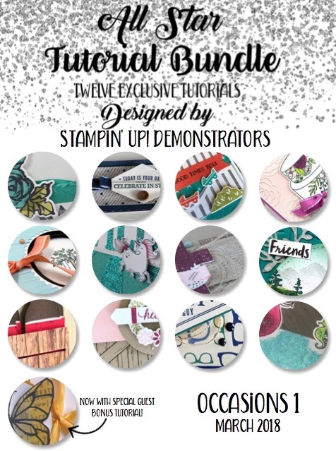 You’ll find a full list of supplies and a shopping list at the end of today’s blog post. Don’t forget that when you shop with me in my Canadian Online Stampin’ Up! Store you become one of my VIP customers. And that’s a lot of fun! I gave away 9 stamp sets to my VIPs last week! Full details on how to join the VIPsHERE. You’ll also get the All Star Tutorial Bundle FREE from me when you purchase $50 or more using the monthly host code.