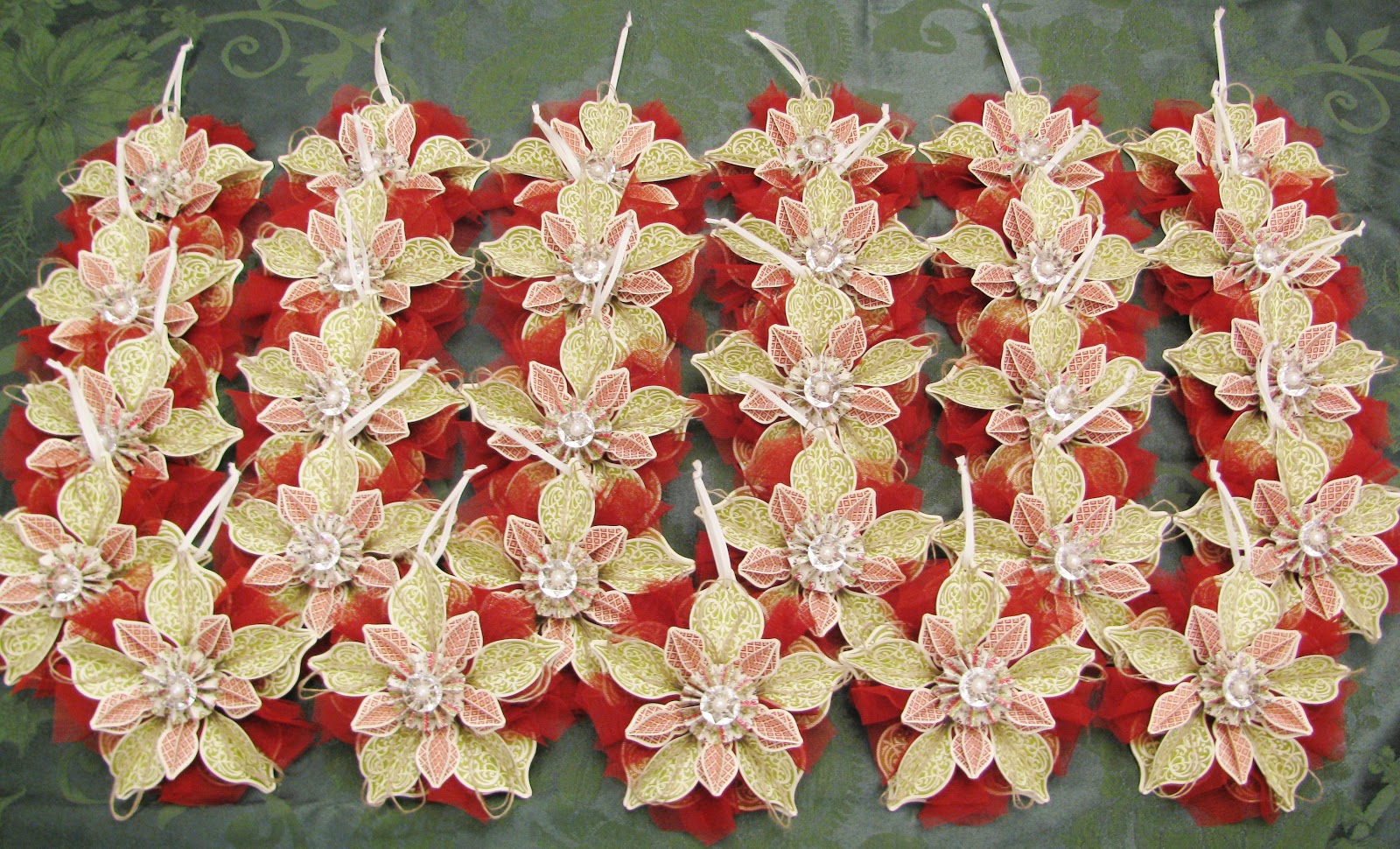 That’s 29 of the ornaments from the front of the Holiday Catalogue. Each one takes about an hour or hour and a half, so I’ve been one busy stamper! Did you know it takes 20 rounds through the Big Shot for each one? Multiply that by 29 ornaments. (shudder)