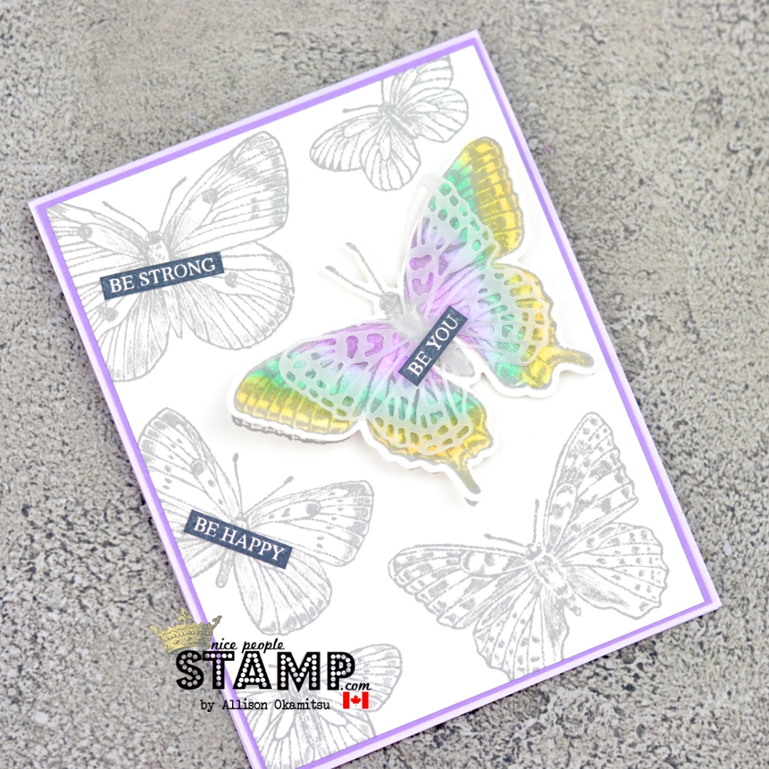 I created today’s card from start to finish on my Facebook Live Crafting Show on my NicePeopleStamp Facebook Page – join me Wednesdays at 7pm MT. I have uploaded the edited version for you so you can see how I coloured that gorgeous butterfly using my Stampin’ Blends alcohol markers.