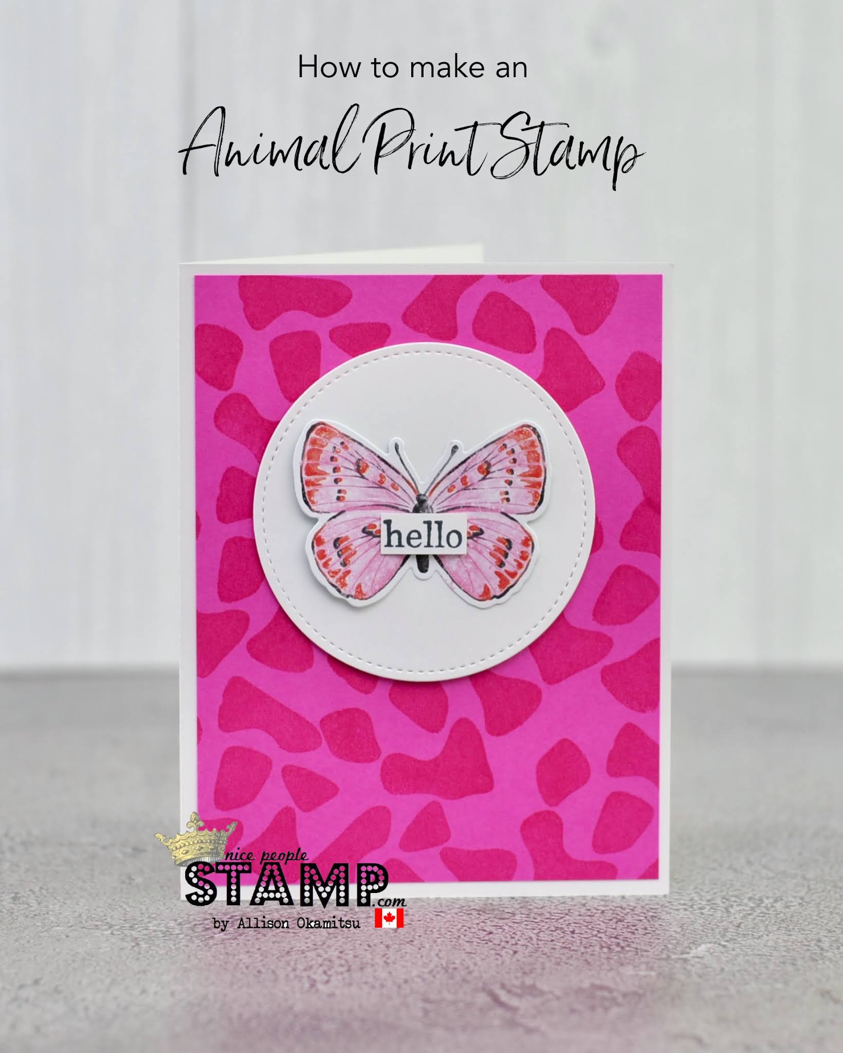 I created today’s card from start to finish on my Facebook Live Crafting Show on my NicePeopleStamp Facebook Page – join me Wednesdays at 7pm MT. I have uploaded the edited version for you so you can see how I made this fun animal background stamp!