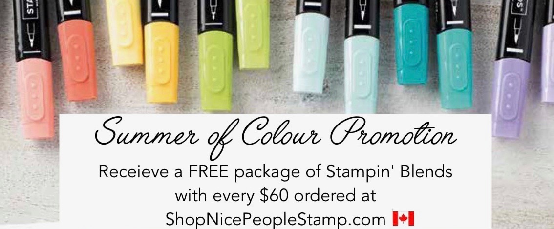 For every $60 you spend at at www.ShopNicePeopleStamp.com, you’ll receive a package of Stampin’ Blends of your choice from me! This promotion runs from July 1-Aug 31, 2020. Think of all the amazing markers you can collect in this time – BUT time is running out!