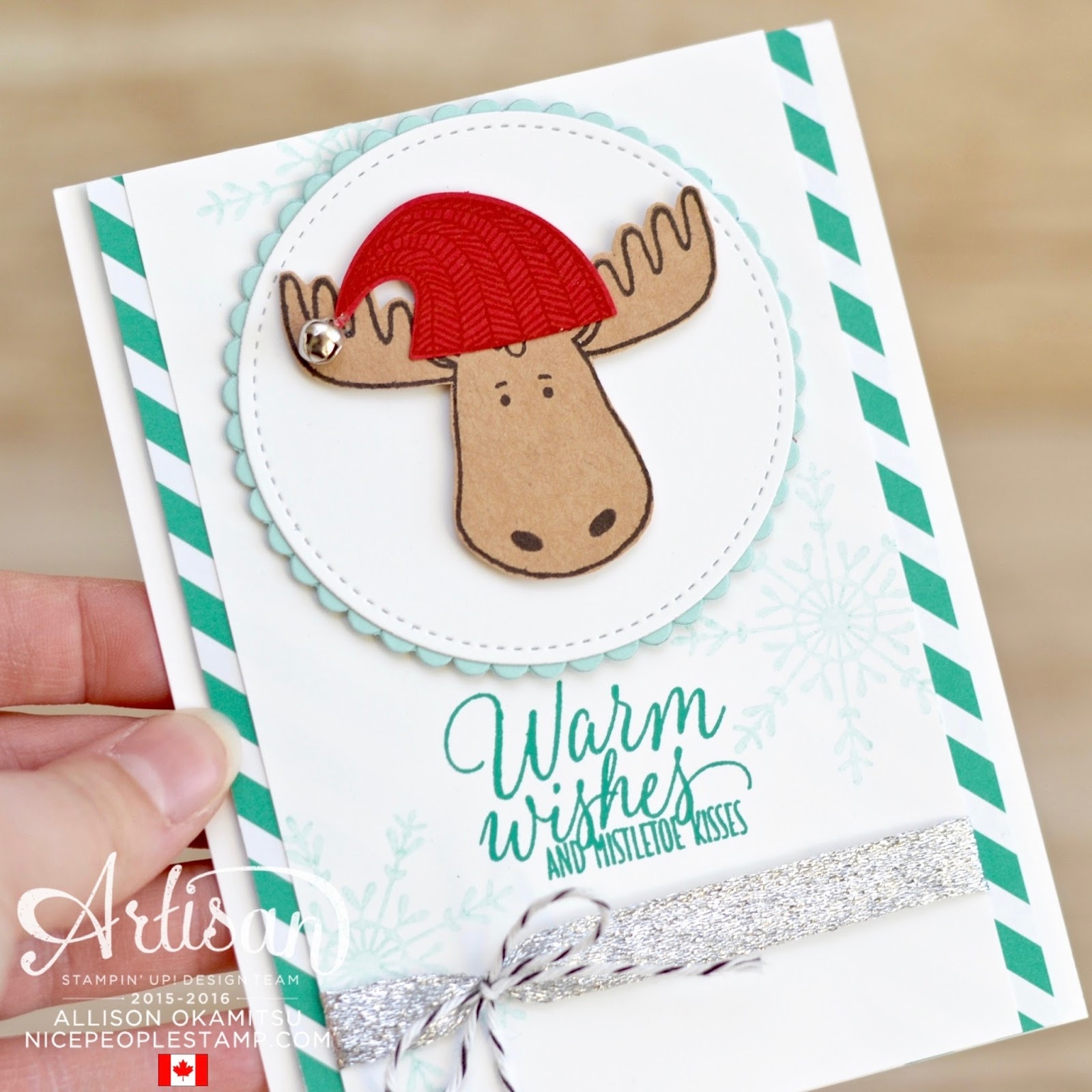 The Santa and his cute hat are from the Jolly Friends Bundle, and the snowflake and sentiment from the Stitched with Cheer stamp set.