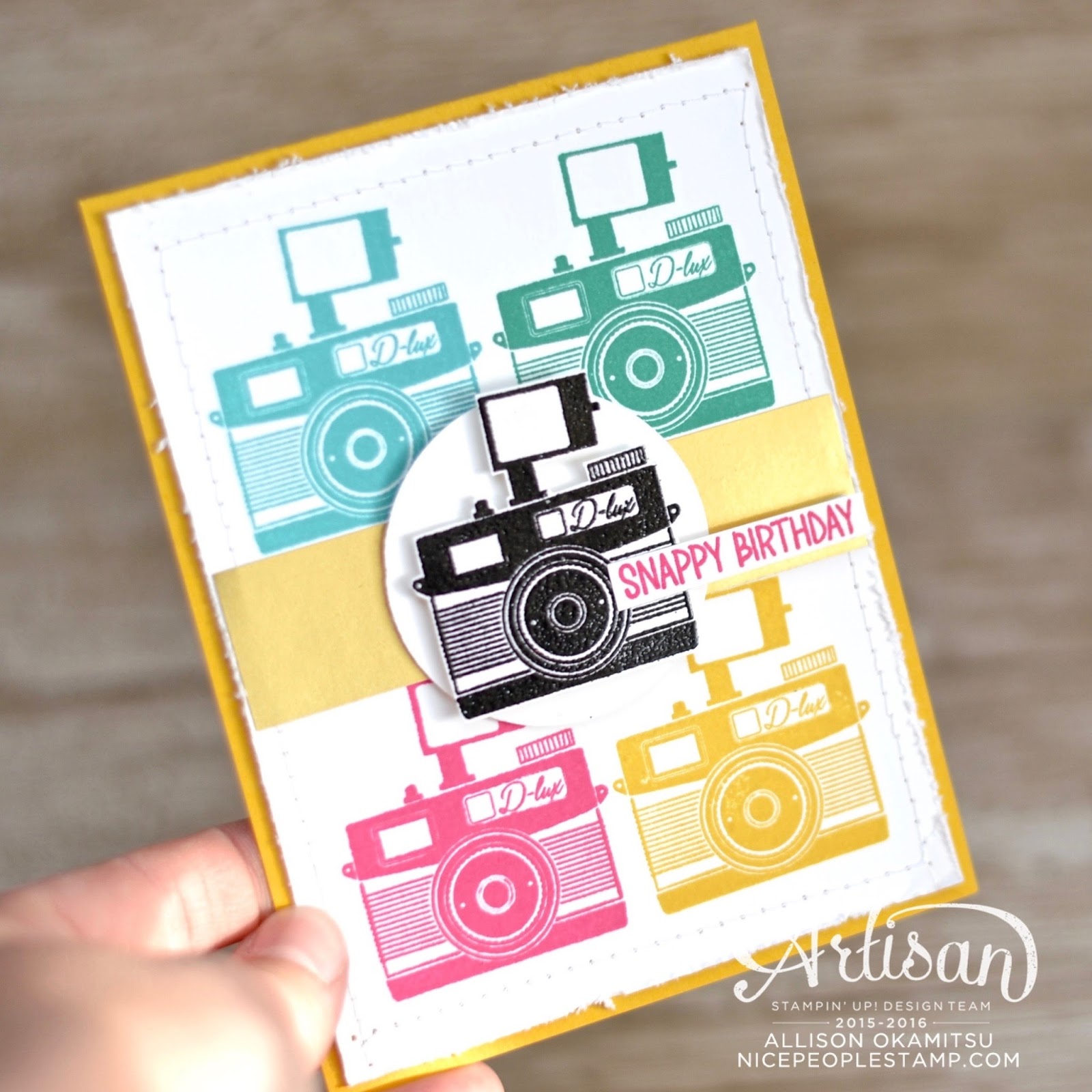 I thought the vintage camera from the Pun Intended stamp set was totally perfect for our theme this month.