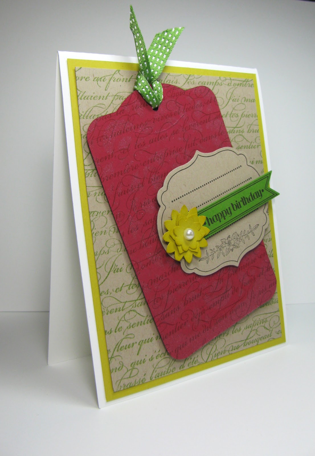 Embellishments: Basic Pearl, Gumball Green 3/8″ Stitched Satin Ribbon
