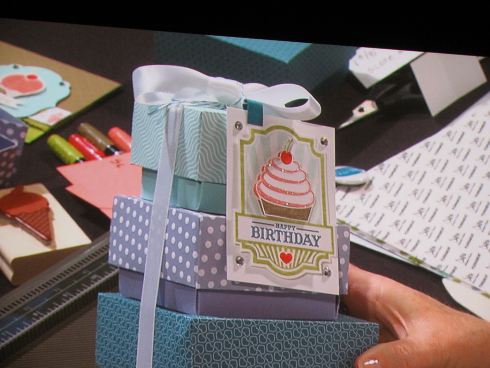 So after the dance crew had vacated the stage, Donna sat down to do a stamping presentation for us. I LOVE Donna’s presentations, check out her awesome ideas: