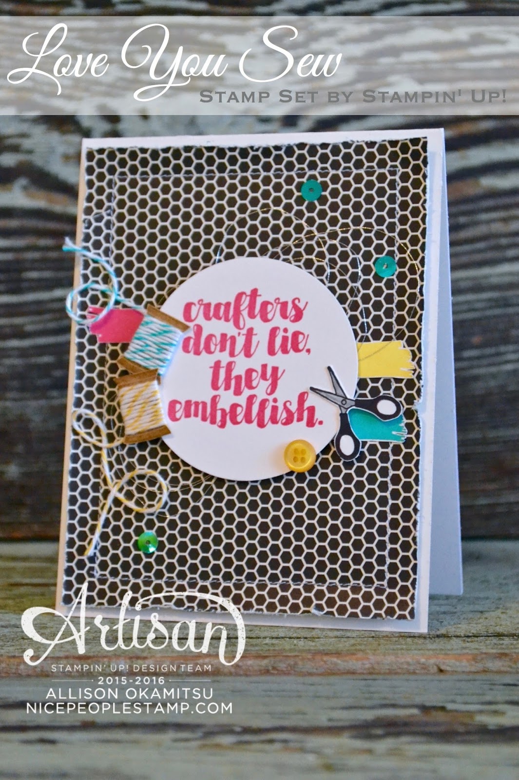 Today’s card is made with a very special stamp set. It’s called Love You Sew, and is ONLY available when you host a stamping gathering with sales over $200, or place a $200 or more order yourself. It’s very exclusive, and SO CUTE!