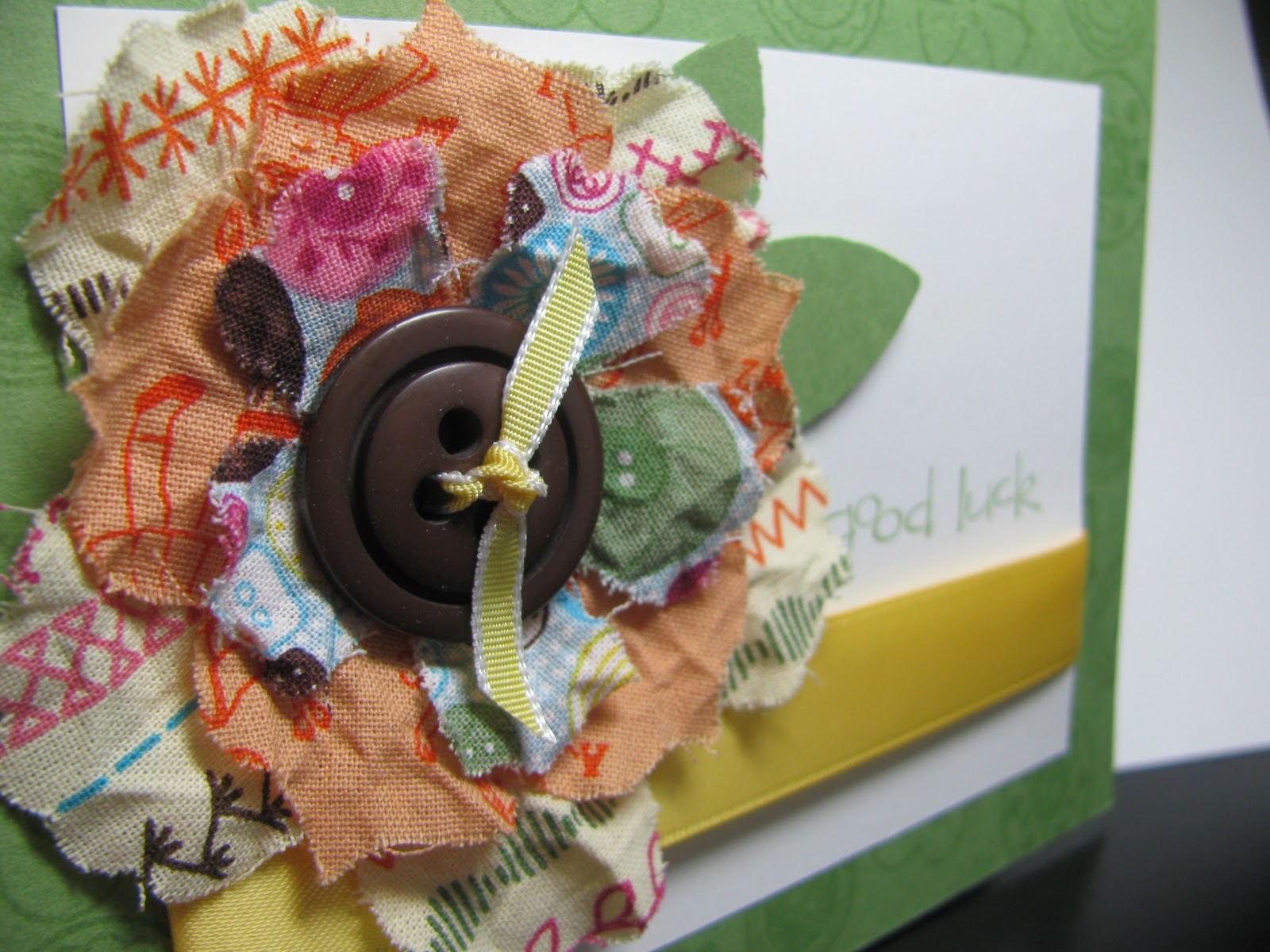 Then we made a pretty simple card with the Fun Flowers Die, some fabric, and some spray starch (yes, that stuff for your clothes).