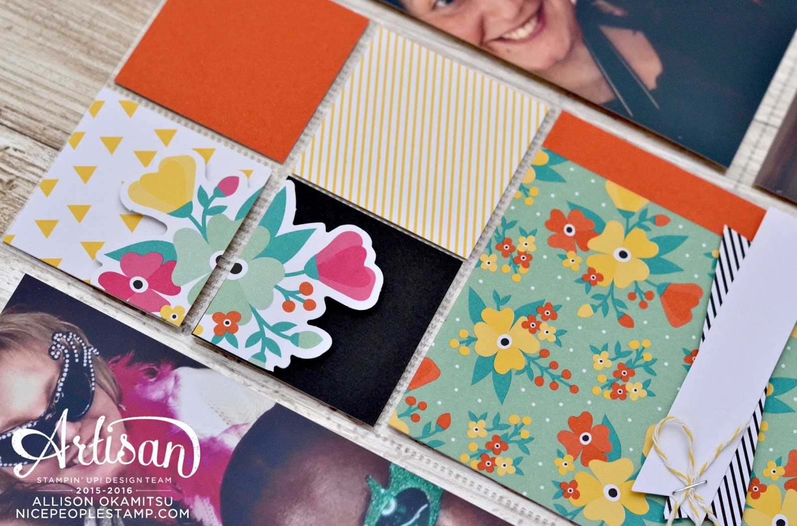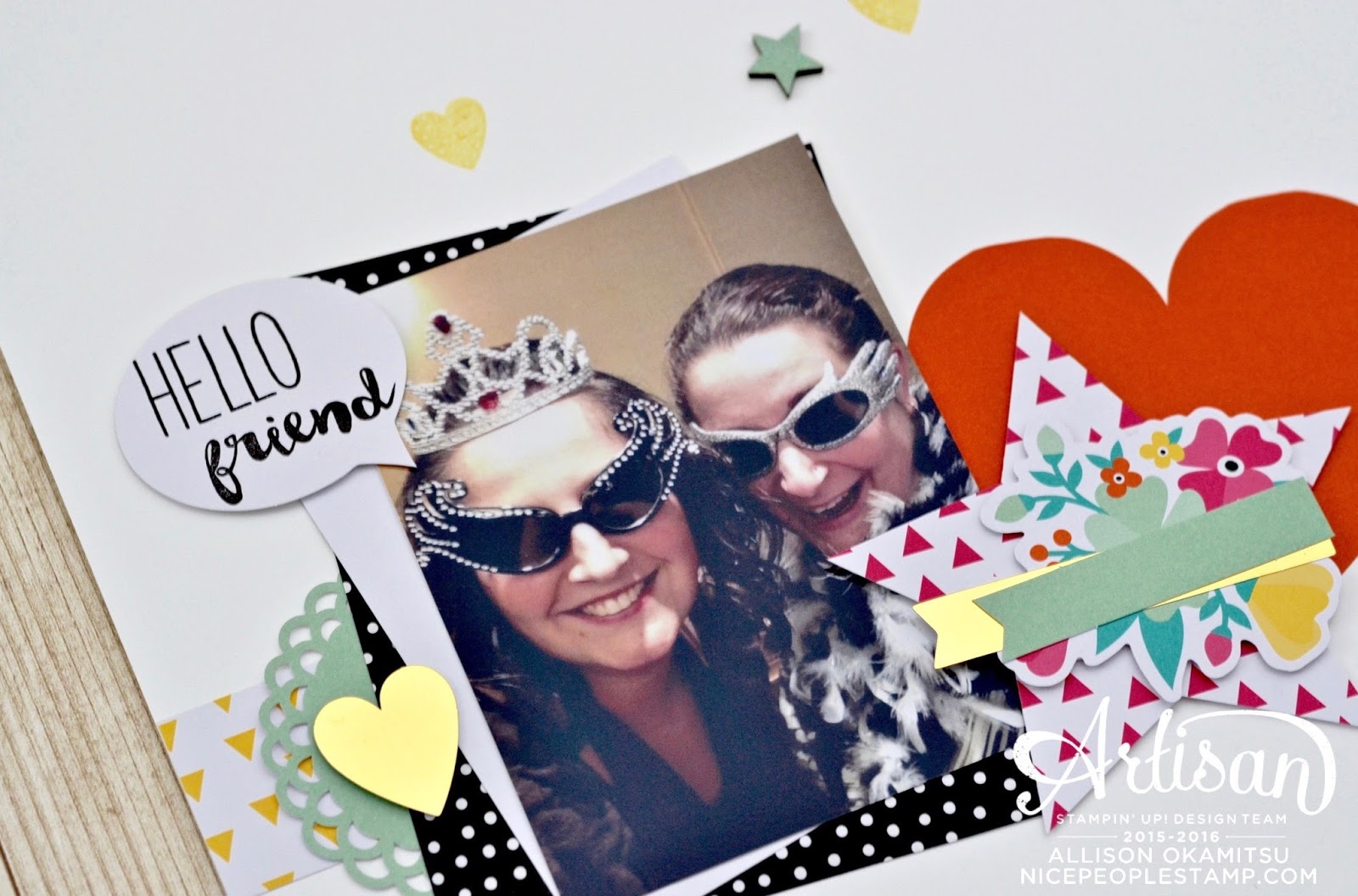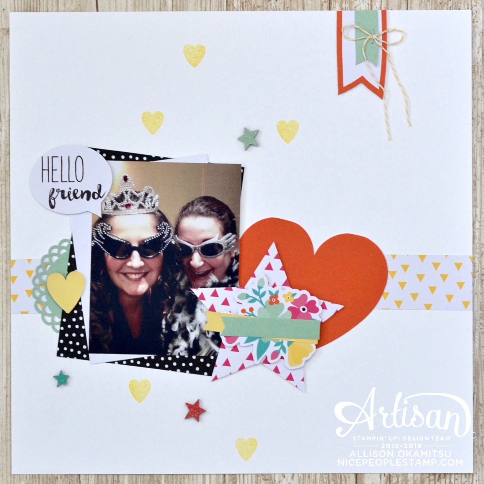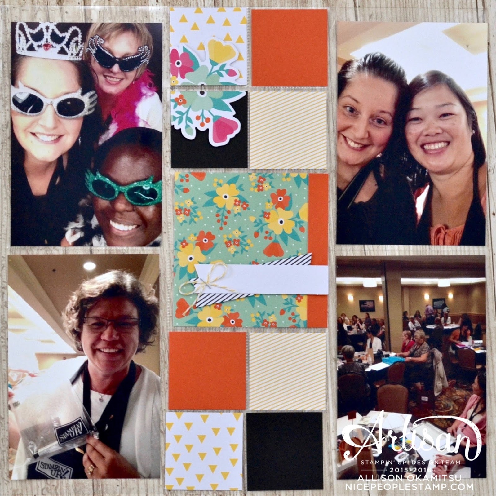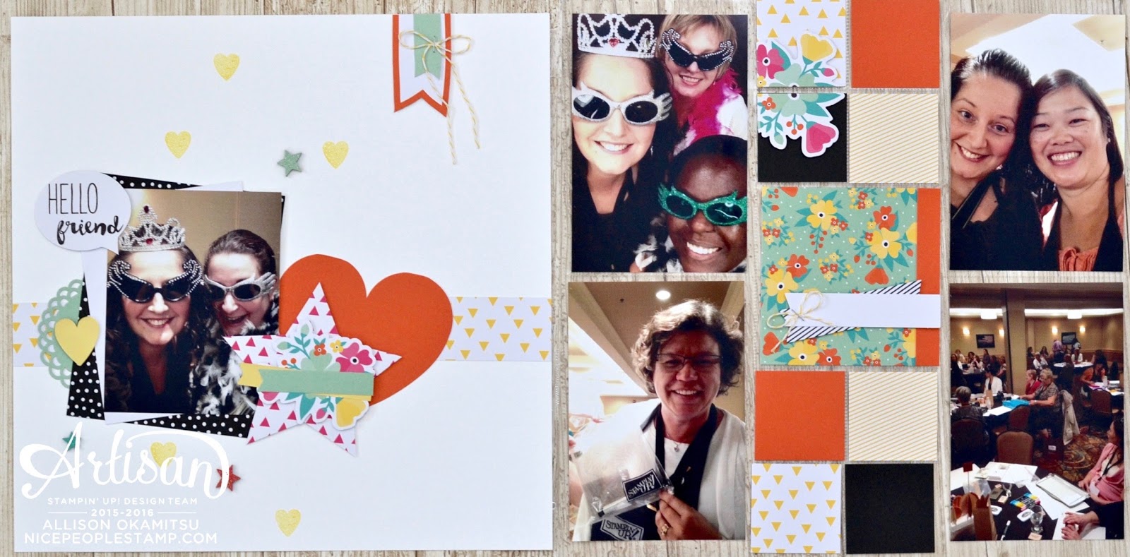 I often do a traditional 12×12 layout within my Project Life pocket layouts, to highlight a special photo. This is one of me and my friend Shannon playing dress up in the photo booth at the event. I used everything from the kit to complete this page, with the exception of the 12×12 Whisper White cardstock and a Daffodil Delight Ink Pad.