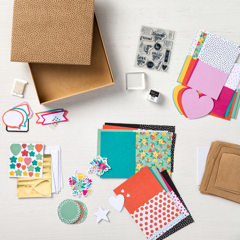 The Oh Happy Day greeting card kit is filled with incredible embellishments, card bases, and even stamps.