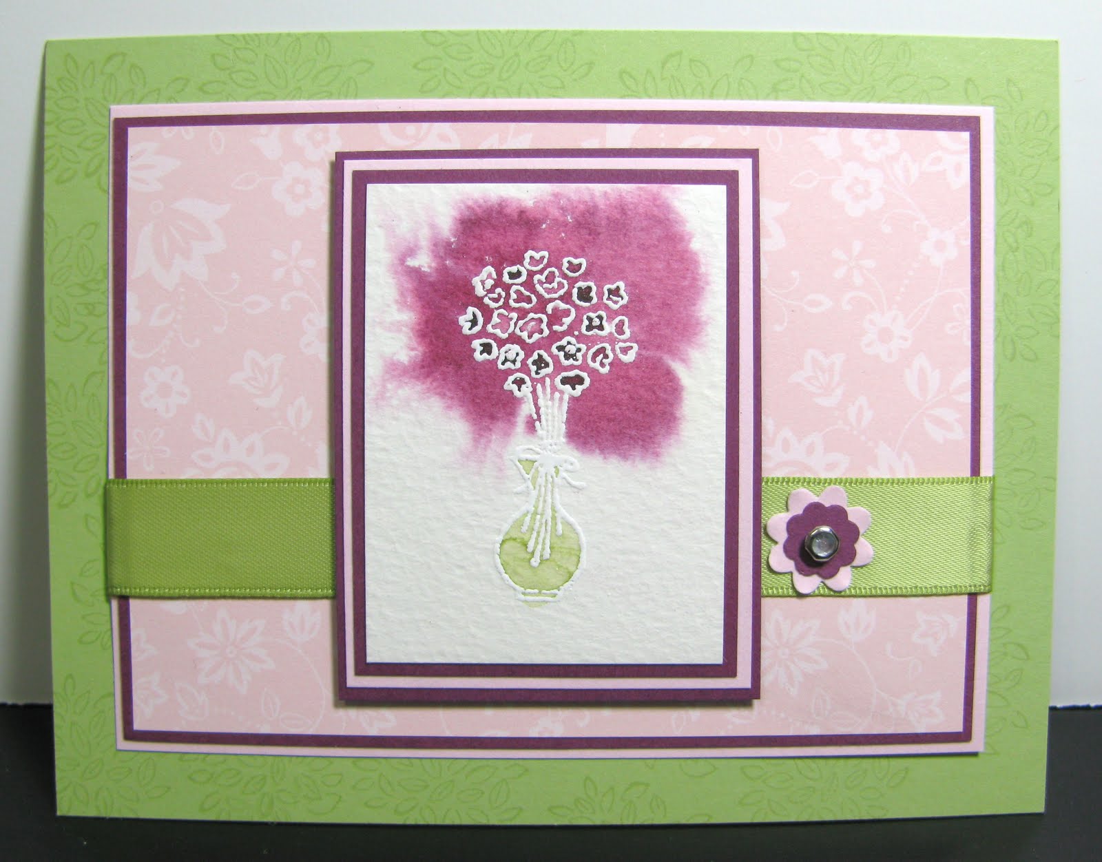 This card was made by Bobbi Collins. She makes such pretty cards! I loved her swap from Calgary regionals as well! This one is made with the Bouquet Bunch stamp set.