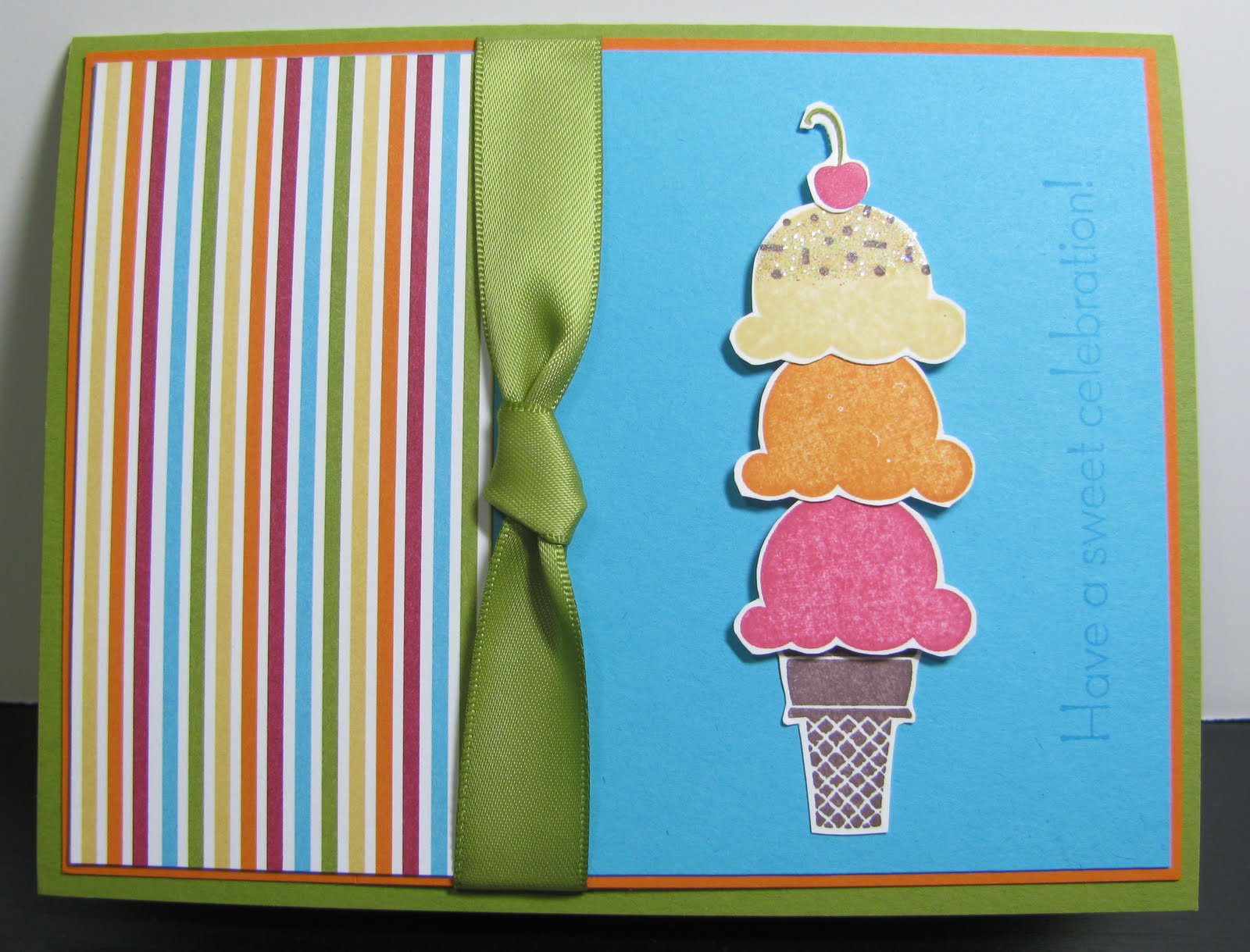 This card was made by our fearless leader Kim Knopf. I just love the new Sweet Scoops stamp set!!!!!