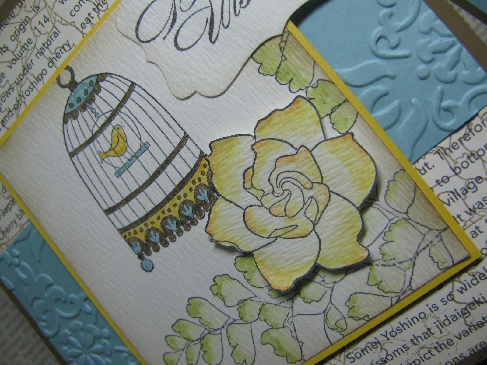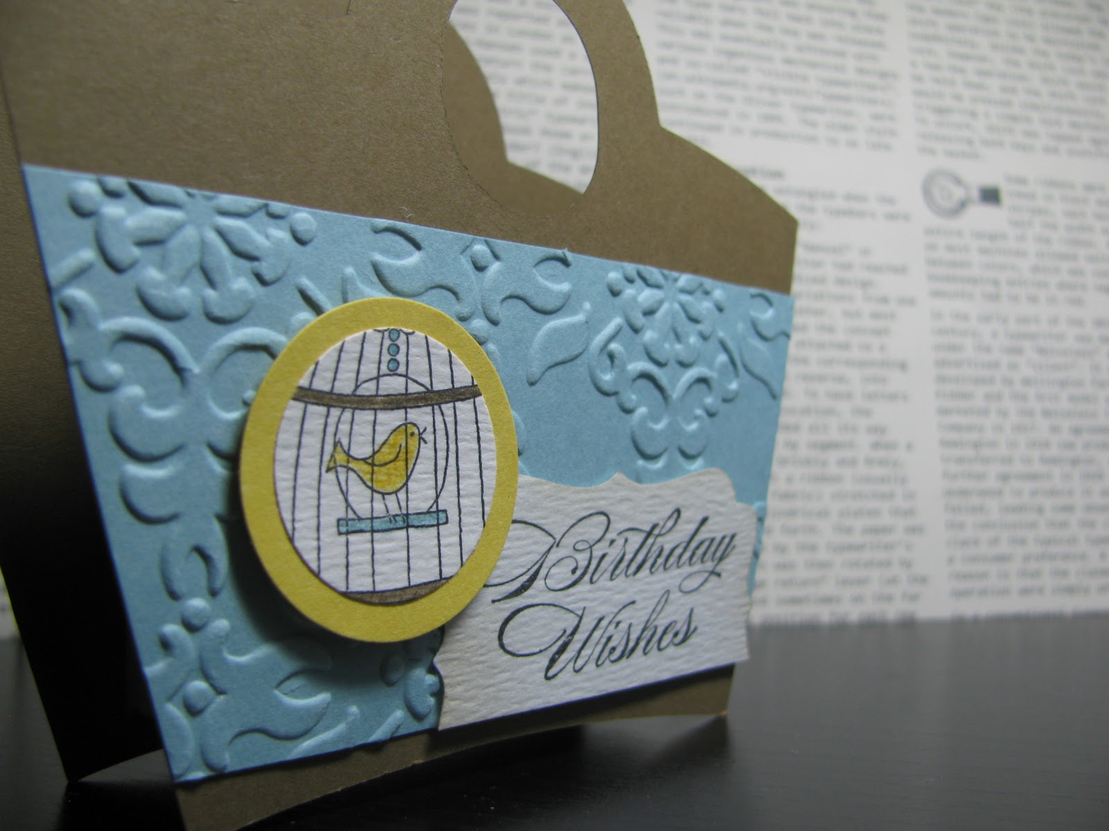 When I made the mini gift bag I used just a portion of the stamp with the bird in the cage by punching it out. That little birdie is so sweet…