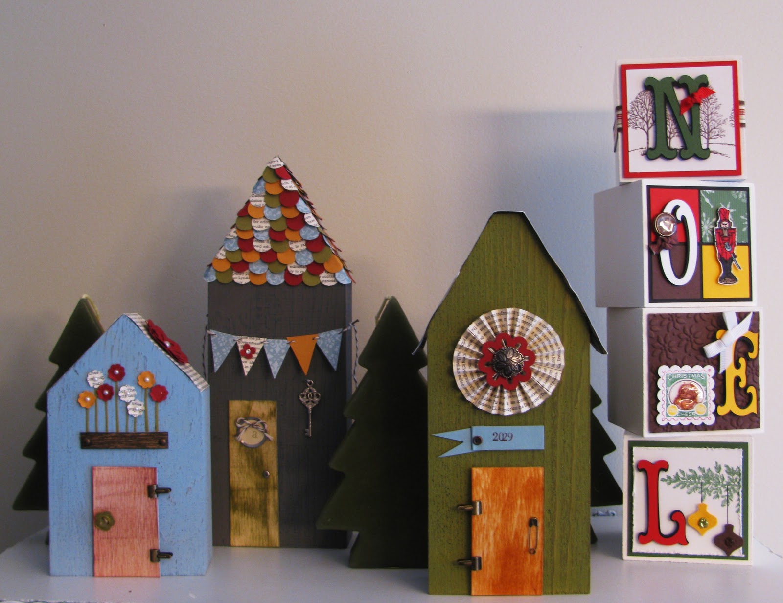 After being a demonstrator for nearly three years I have come to a fabulous realization, Stampin’ Up! causes one to decorate! I have always been HUGE into decorating for the seasons anyways, but since becoming a demonstrator I have added a new type of decorations, the Stampin’ Up! ones! Year after year I create class samples and project ideas that end up adding to my seasonal decorations. I love it! This year I have my NOEL blocks from 2009 and my Village of Cuteness from 2011 Convention on a shelf in my kitchen. I also have my 2009 Advent Calendar displayed as well as many other much loved projects of the past three years. A decorated house at Christmas, what a lovely side effect of being a demonstrator!