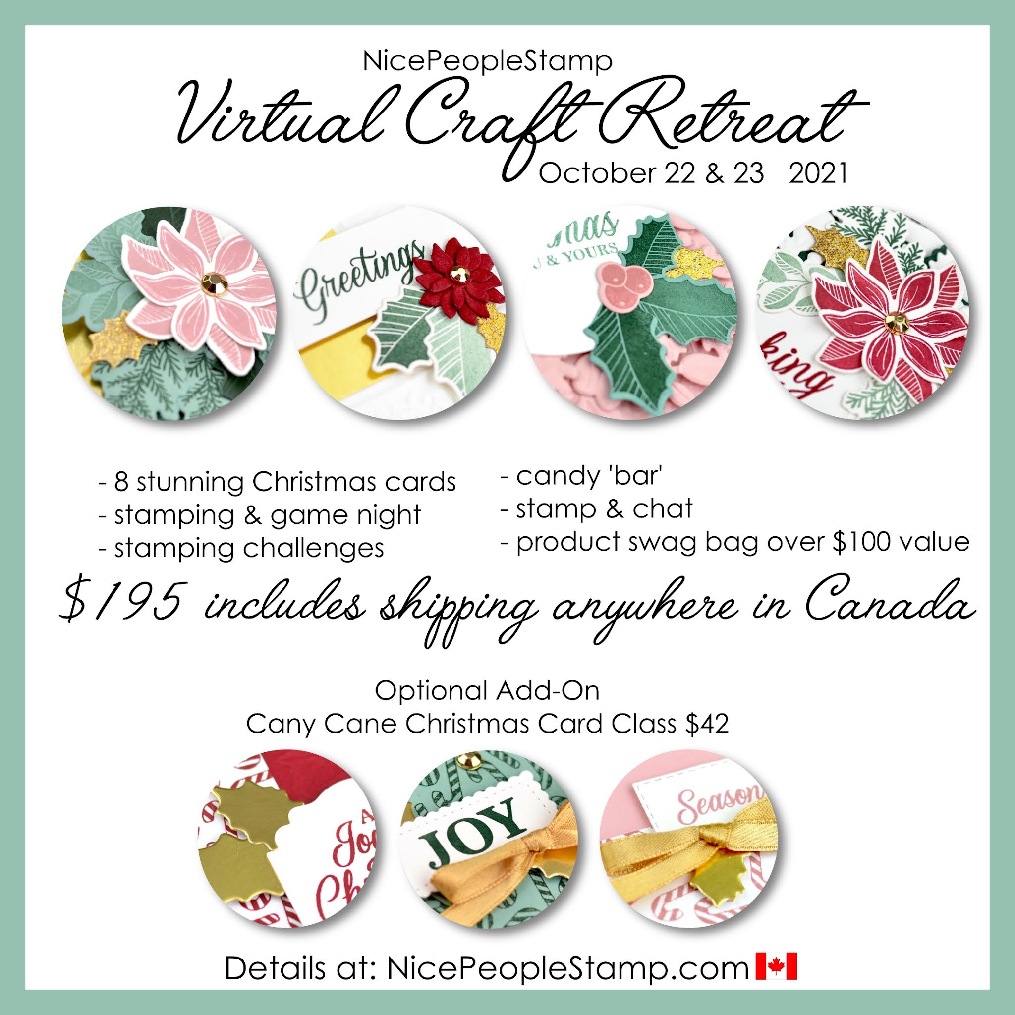 My most popular event of all is here! I’m absolutely thrilled to announce my Fall 2021 VIRTUAL Craft Retreat! This entire event is ONLINE and I’m so so so excited that stampers from all over Canada can join in this incredible weekend.