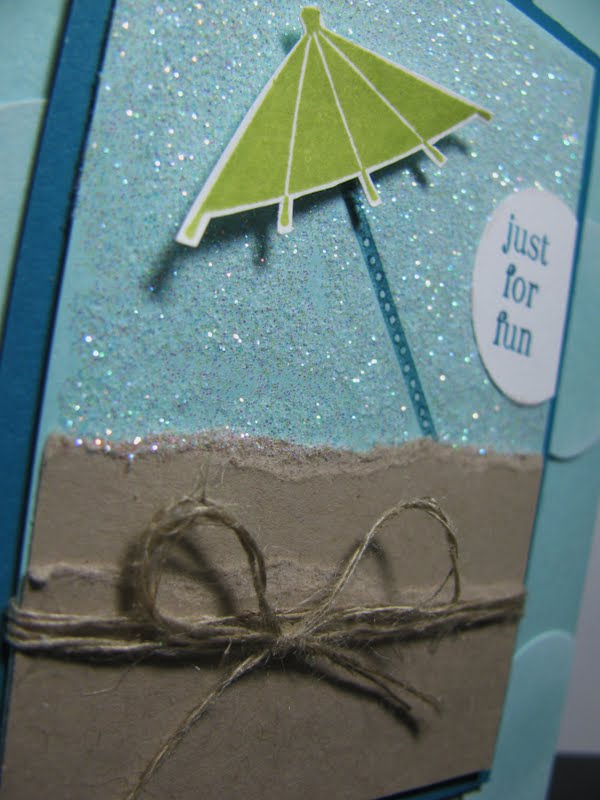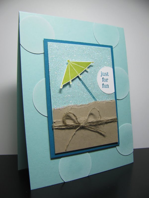 I got to ink up some new rubber at my upline Kristine’s house and I couldn’t help casing one of the make n’ takes from the Alaskan cruise! The new Sweets for the Sweet stamp set is ADORABLE! It’s got all these little candy treats, an umbrella, some sentiments, and even a little bag you can stamp with the candy inside! It’s hard to describe, but take my word for it, it’s a must have! I also got my first taste of the new in-colours while I was there. I am in love. No really. I know I say this alot, and I know I love everything…BUT Pool Party (this new beautiful light blue) is out of this world. Move over Baja Breeze, there’s a new blue in town!