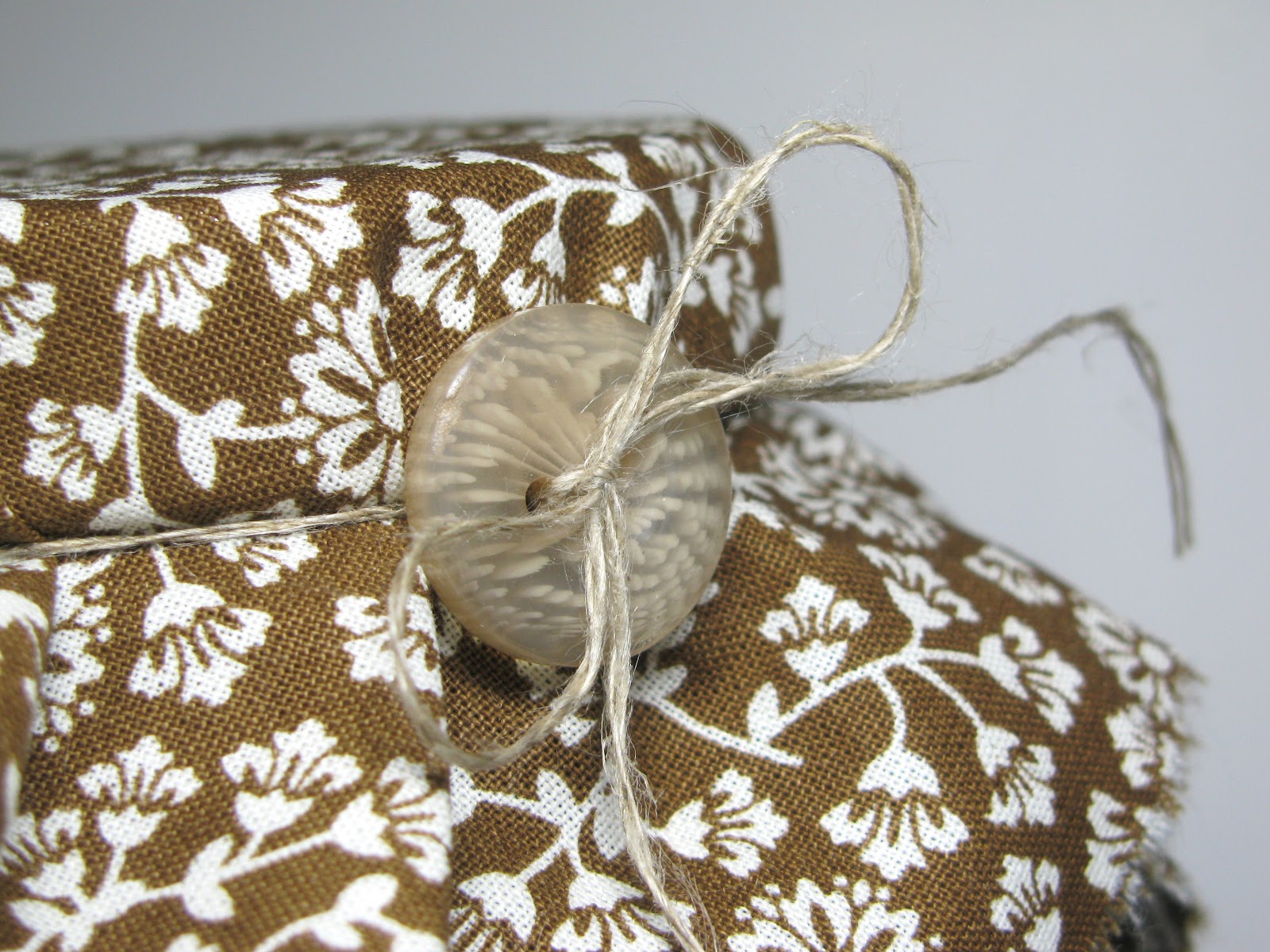 Cut a small square of the Spice Cake fabric, wrap the lid with some linen thread, and a little button for some embellishment and you’re done! Two minutes, I promise.