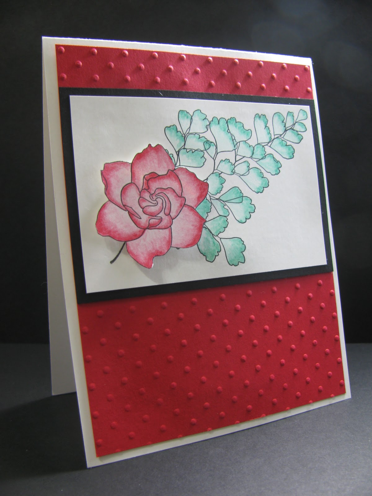 Since I dusted off those crayons on the weekend, I just want to play! Tonight I decided to colour some pretty flower images from the Growing Green stamp set. These simple line images are perfect for water colouring. No sentiment on this card either…another blank one for my emergency stash!