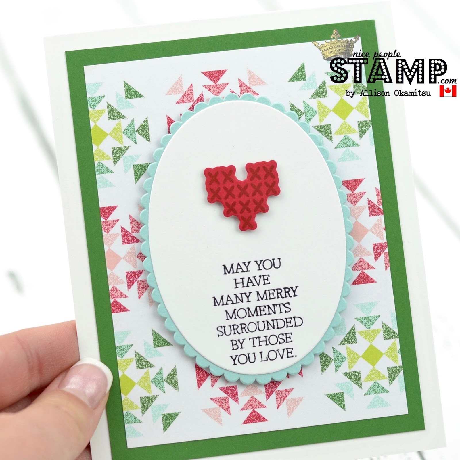 I’ve used the Smitten Mittens Bundle for my card today (and my tutorial). I love this cute little cross stitched heart paired with the Quilted Christmas Designer Series Paper.